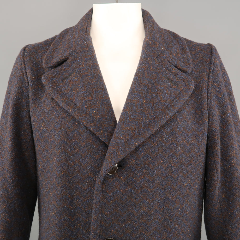 FRANK LEDER Size M Navy & Brown Heather Wool Notch Lapel Oversized Coat