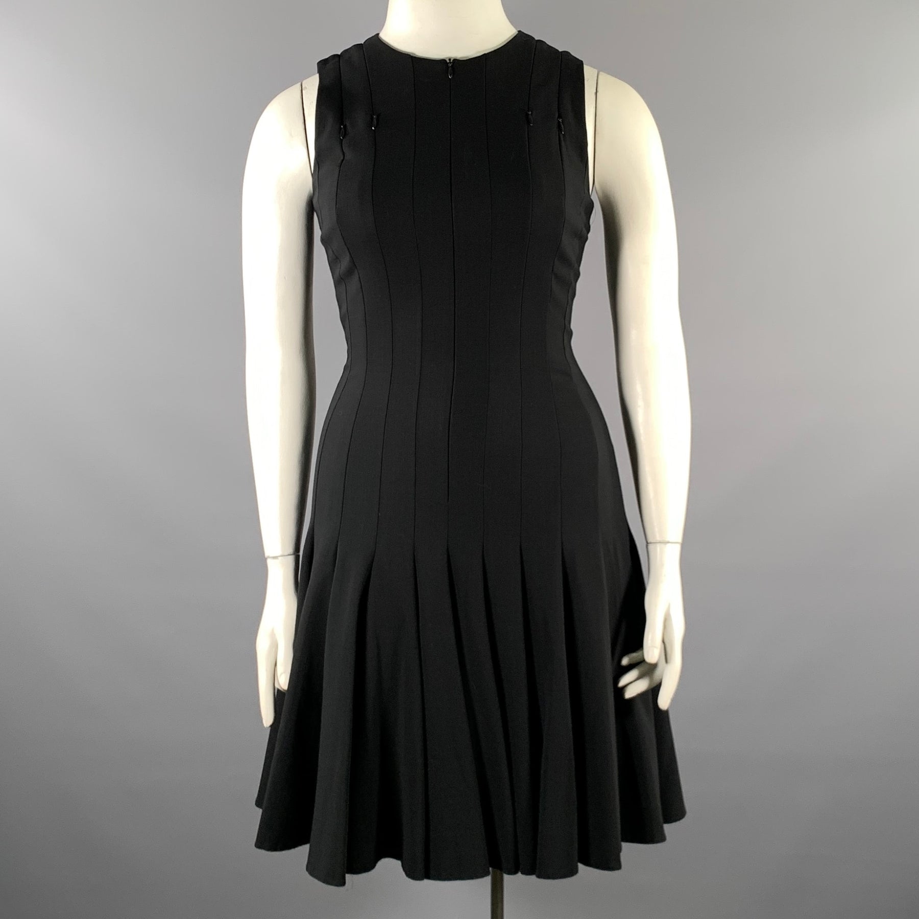 AKRIS Size 8 Black Wool A-Line Knee-Length Cocktail Dress