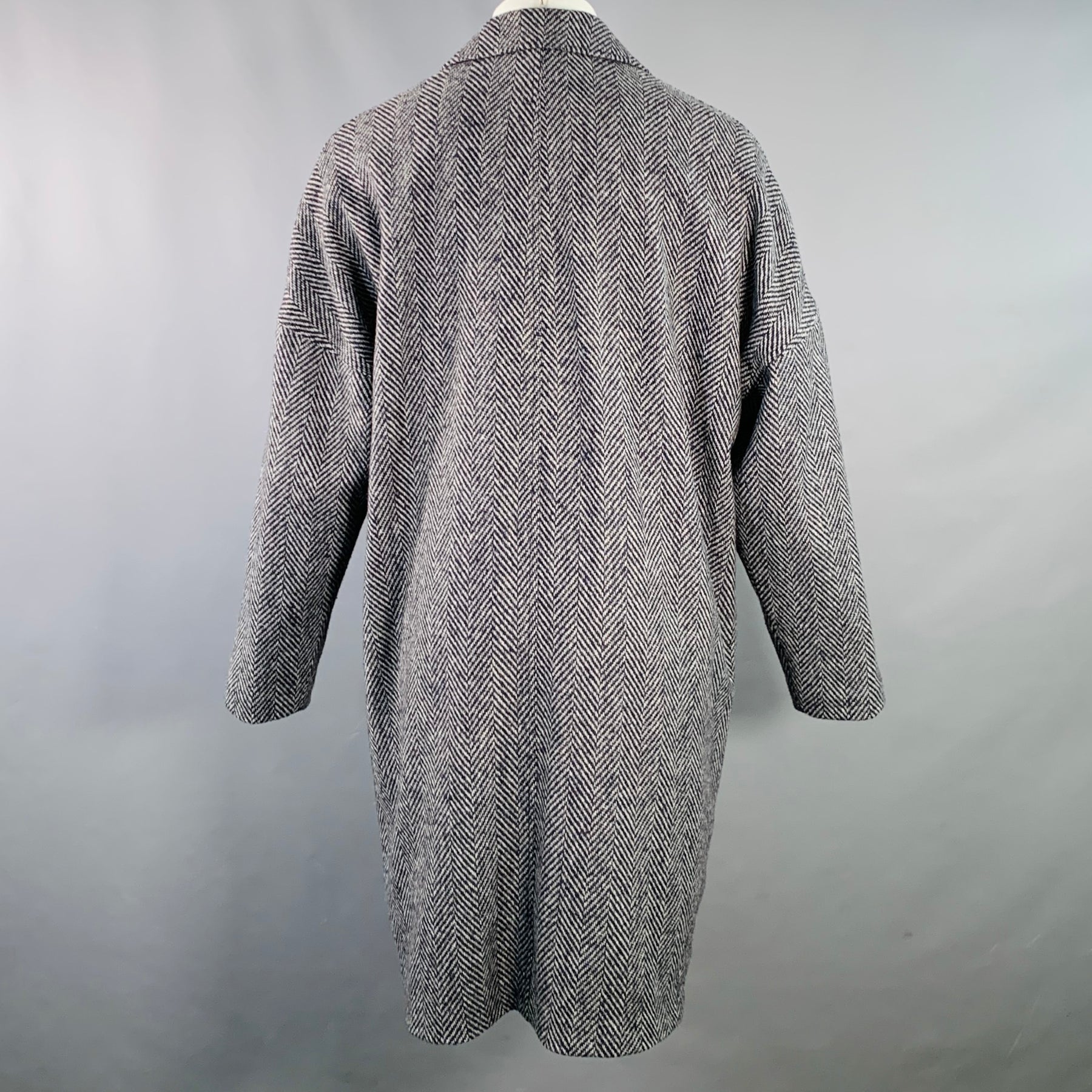 ALEX MILL Size M Grey Navy Herringbone Wool Blend Hidden Buttons Coat