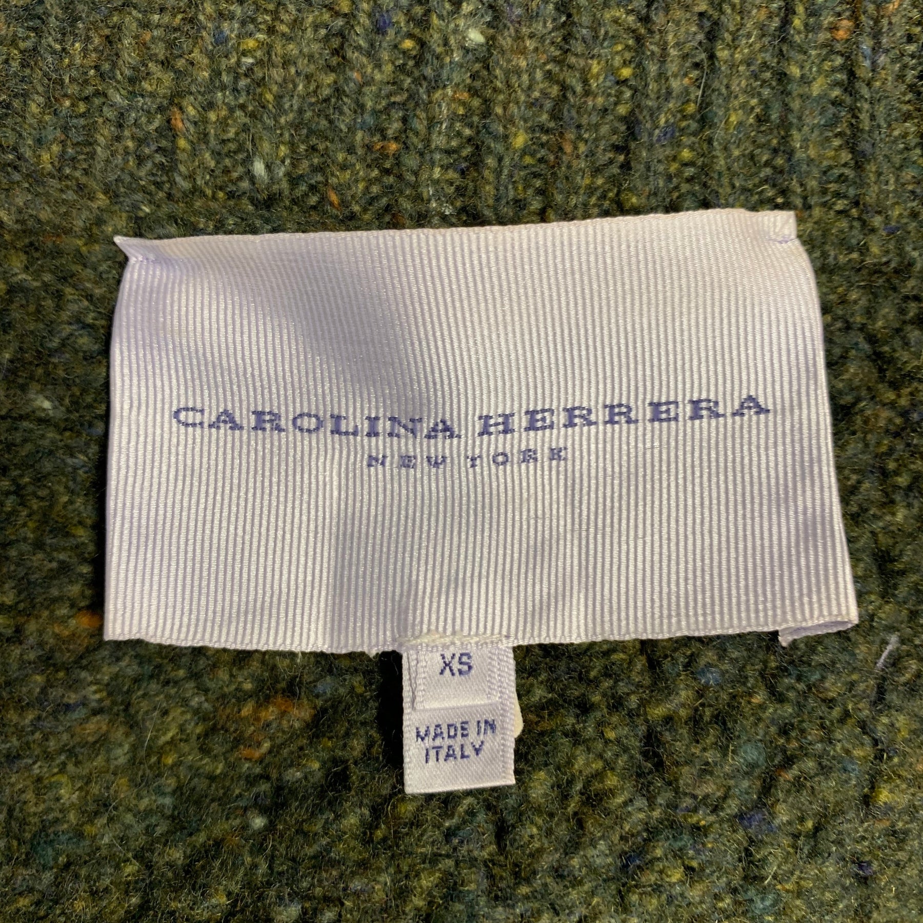 CAROLINA HERRERA Size XS Green Virgin Wool Cashmere Blend Cable Knit Coat