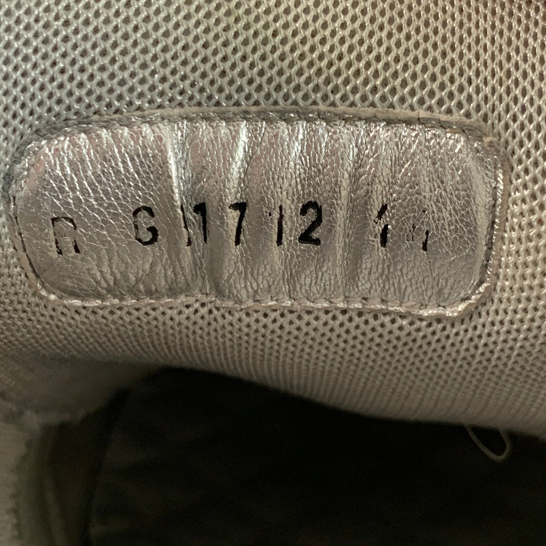 CHANEL Size 11 Metallic Silver Navy Crackled Leather Lace-Up Sneakers