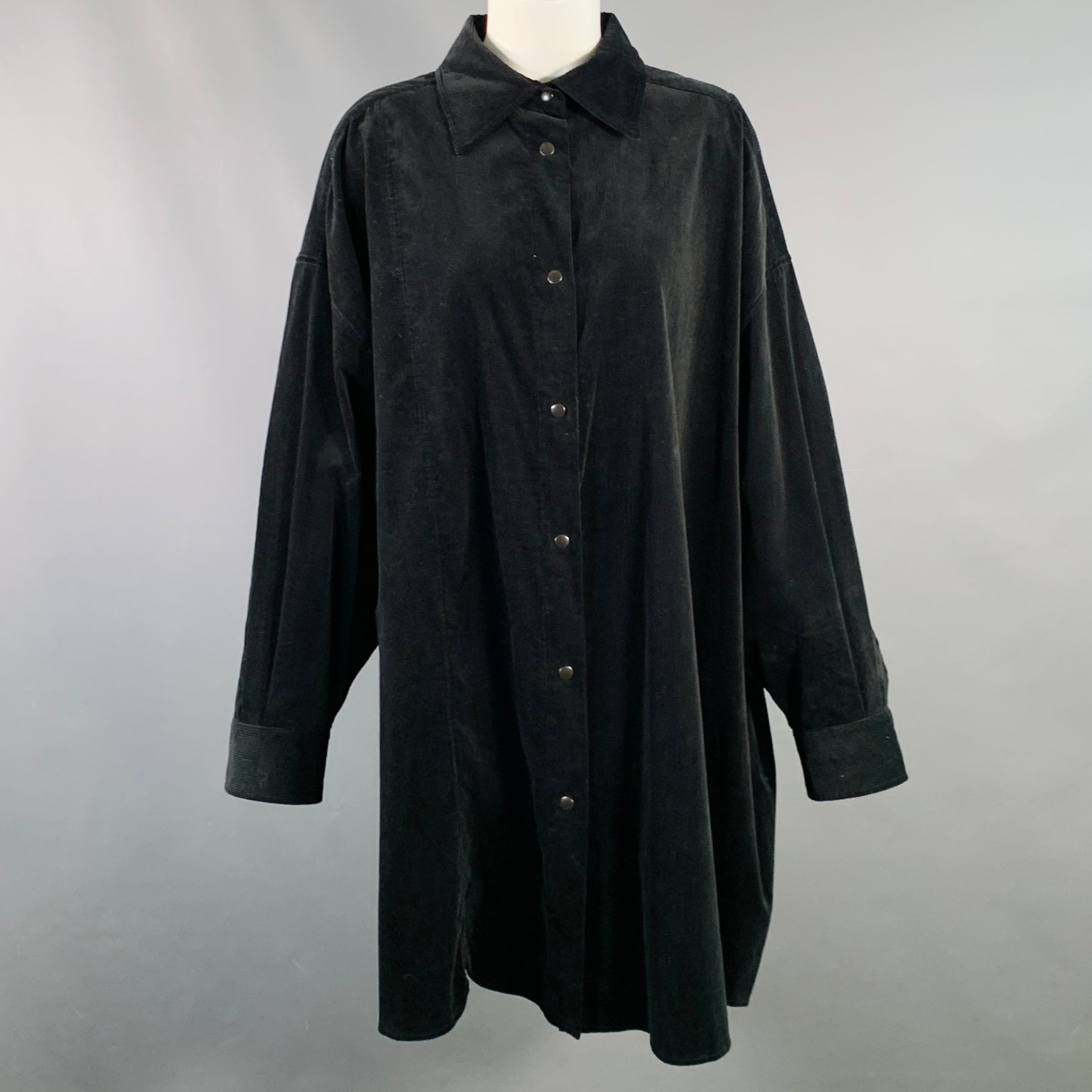 CHRISTIAN DADA Size XS Black Cotton Corduroy Oversized Longline Snaps Shirt