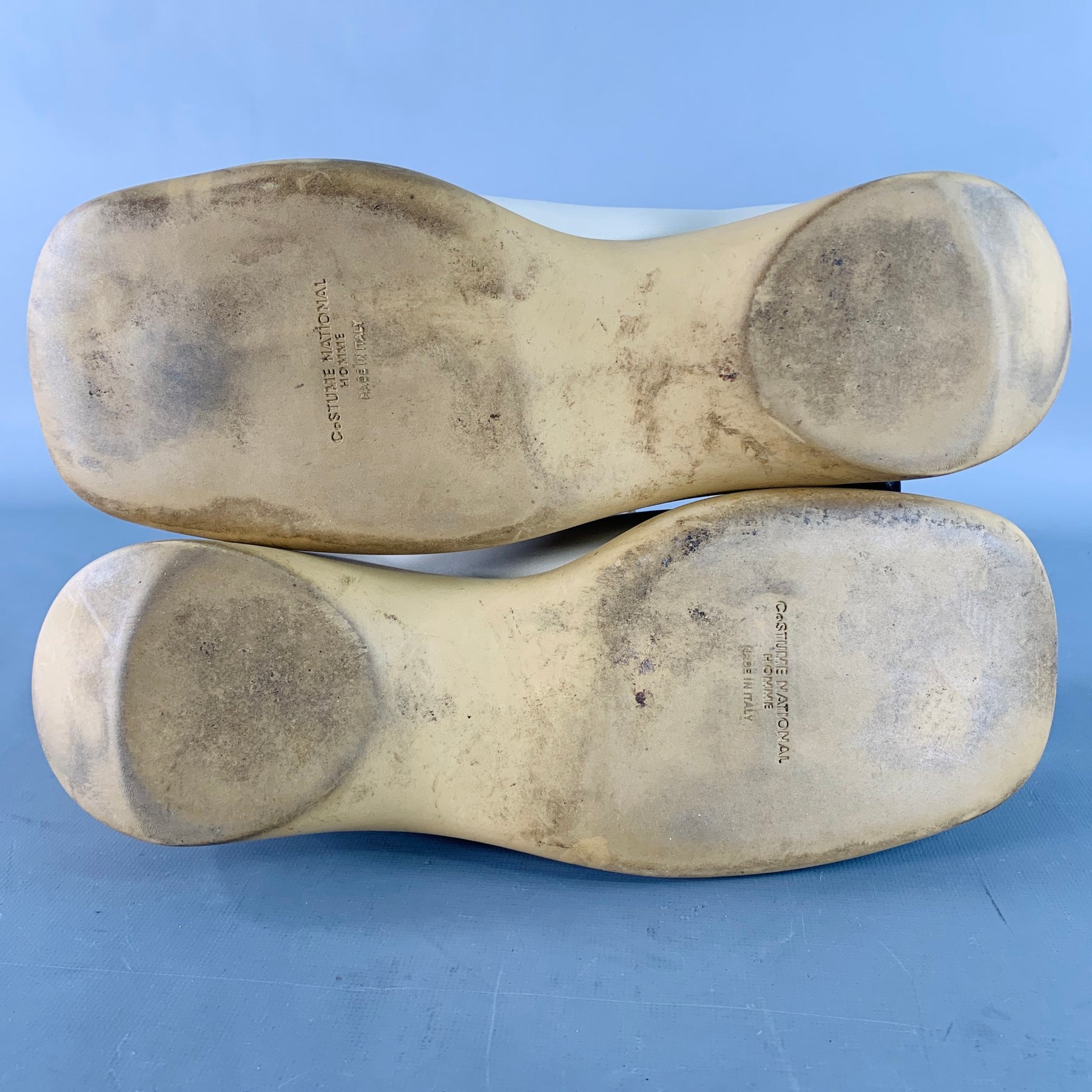 CoSTUME NATIONAL oxford shoes in a beige leather featuring a rubber sole, square toe, and lace-up closure. Shoe trees not included. Made in Italy.