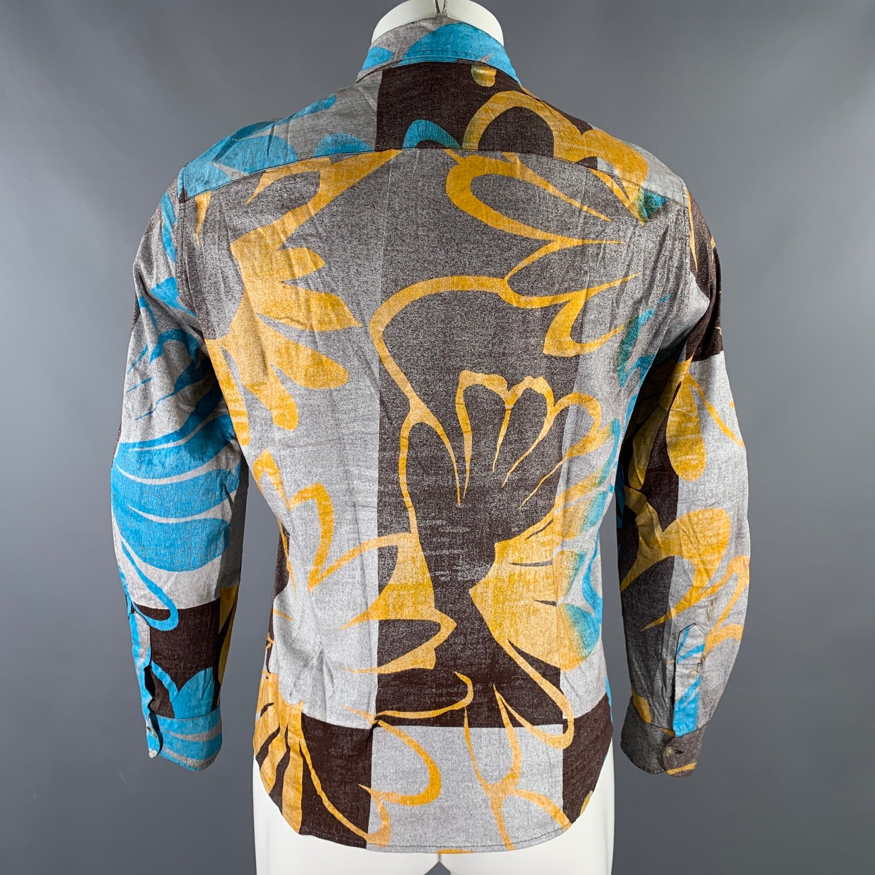 CUSTO BARCELONA Size XS Brown Blue/Silver Abstract Floral Long Sleeve Shirt