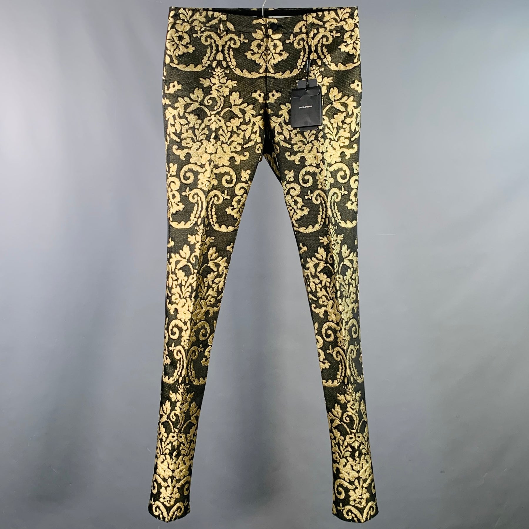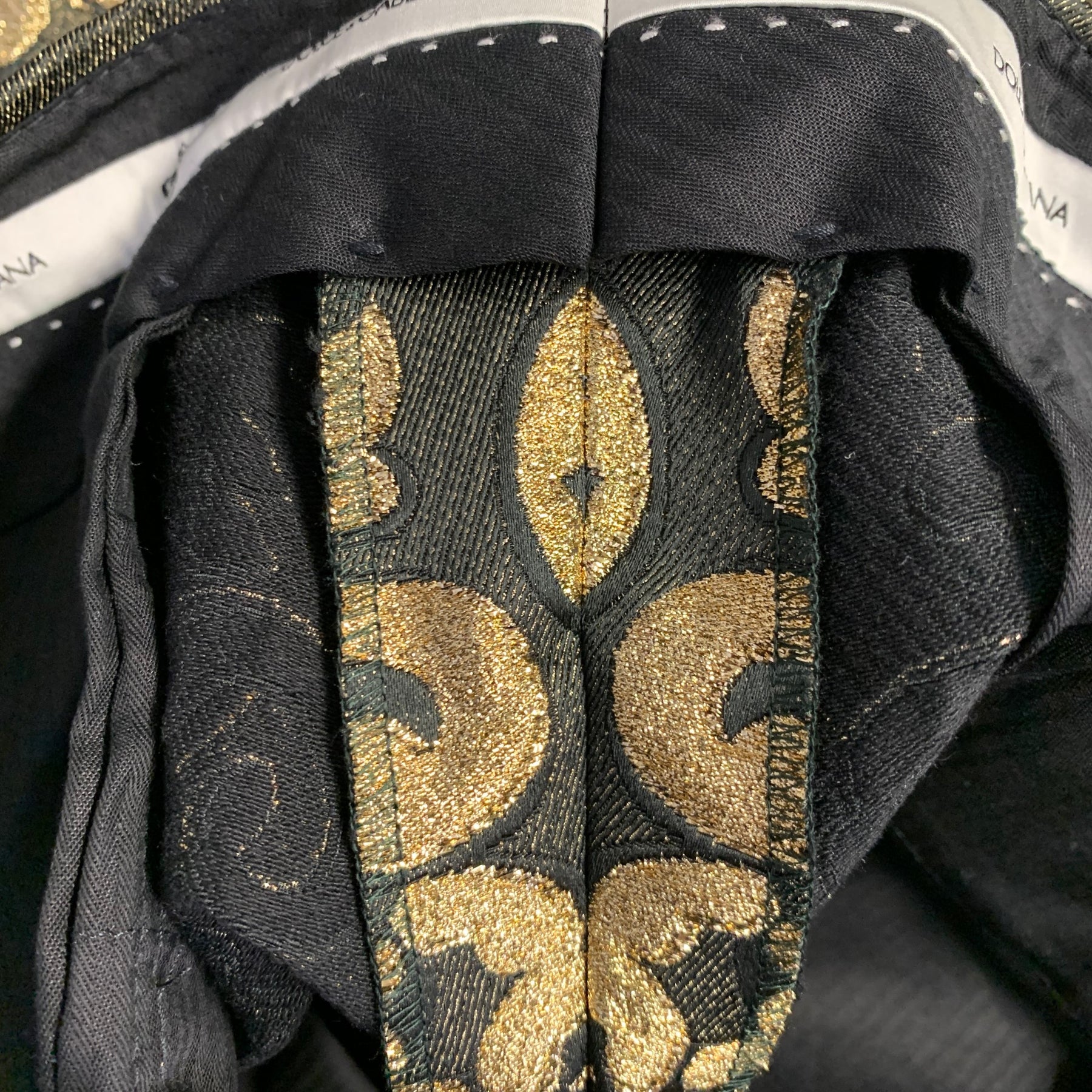 DOLCE & GABBANA Size 30 Black Gold Brocade Polyester Cotton Dress Pants