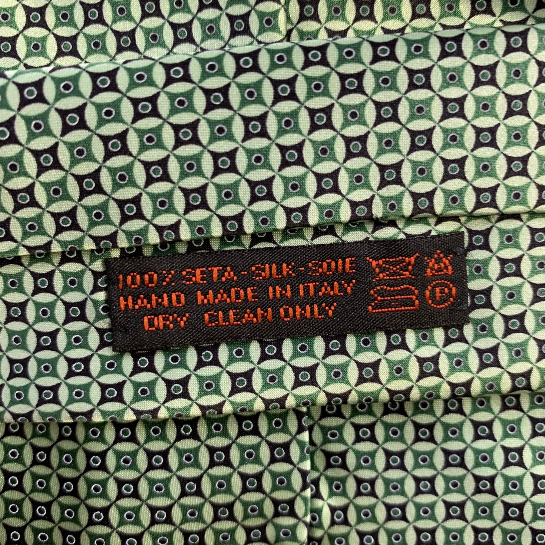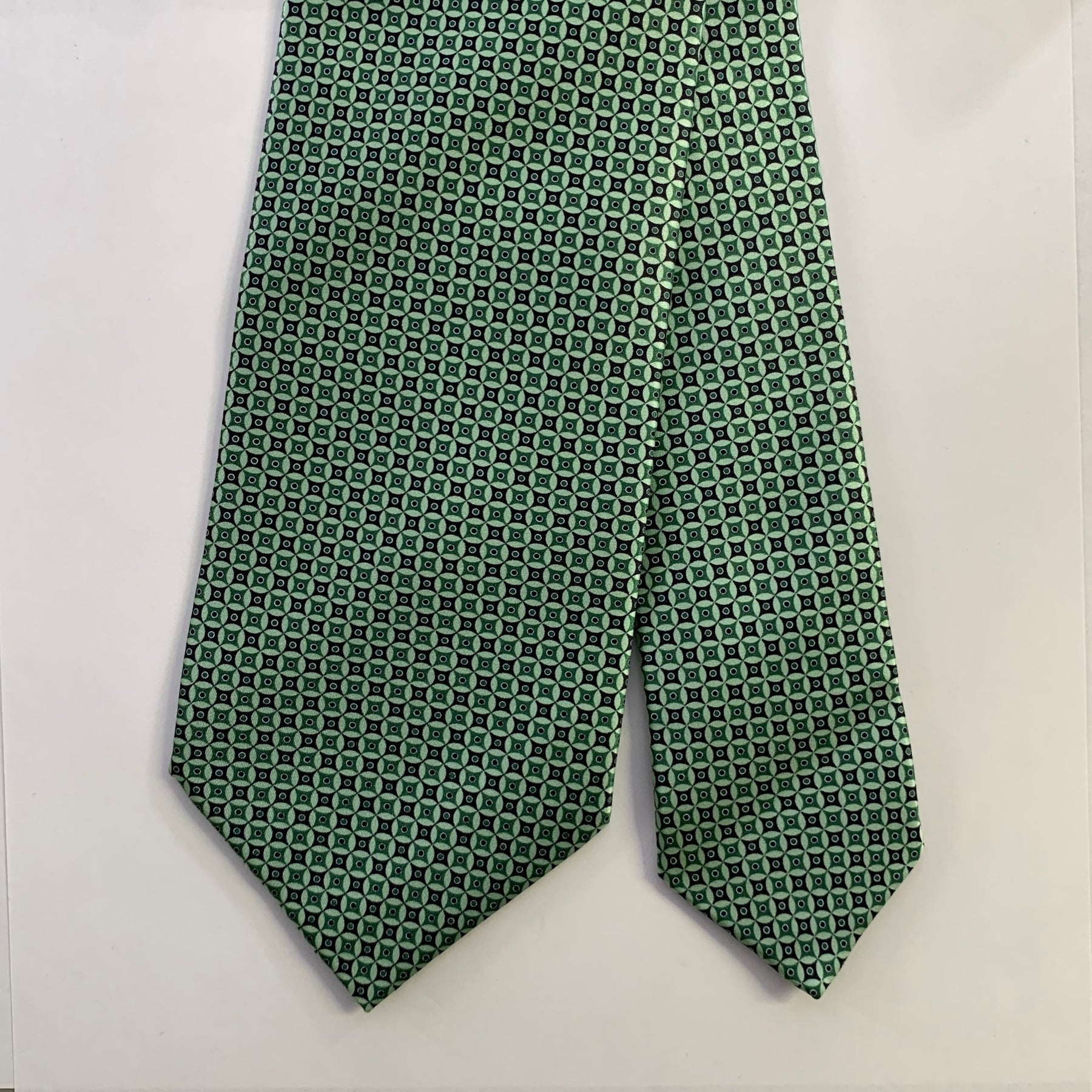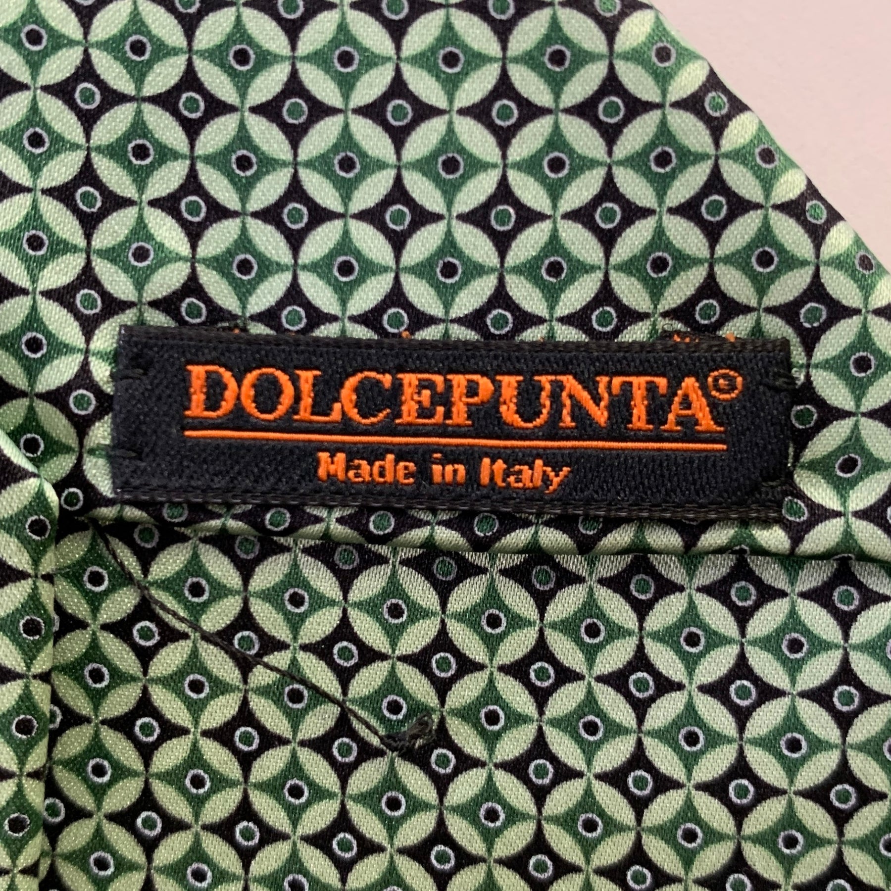 DOLCEPUNTA necktie in a green silk featuring a black geometric print . Made in Italy.