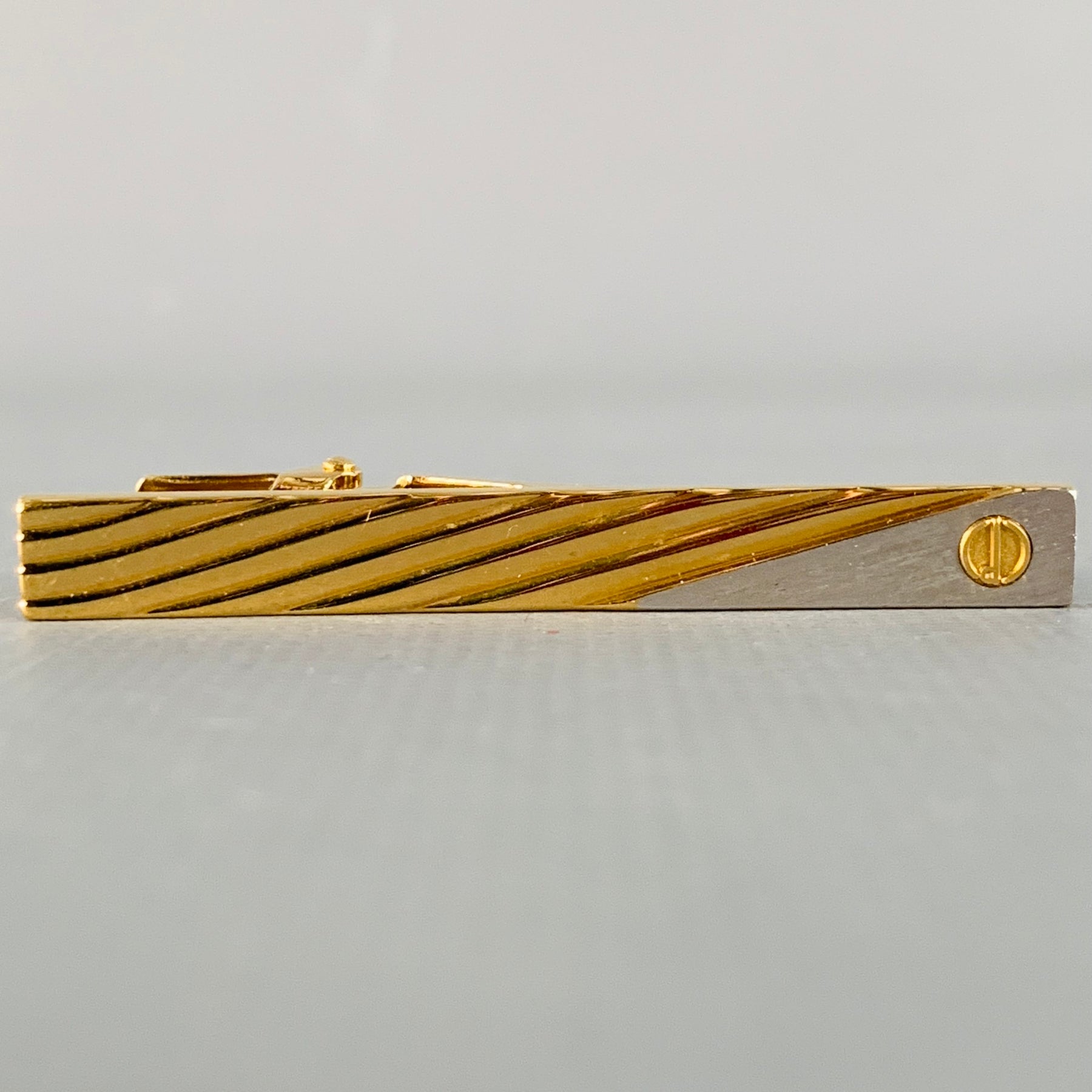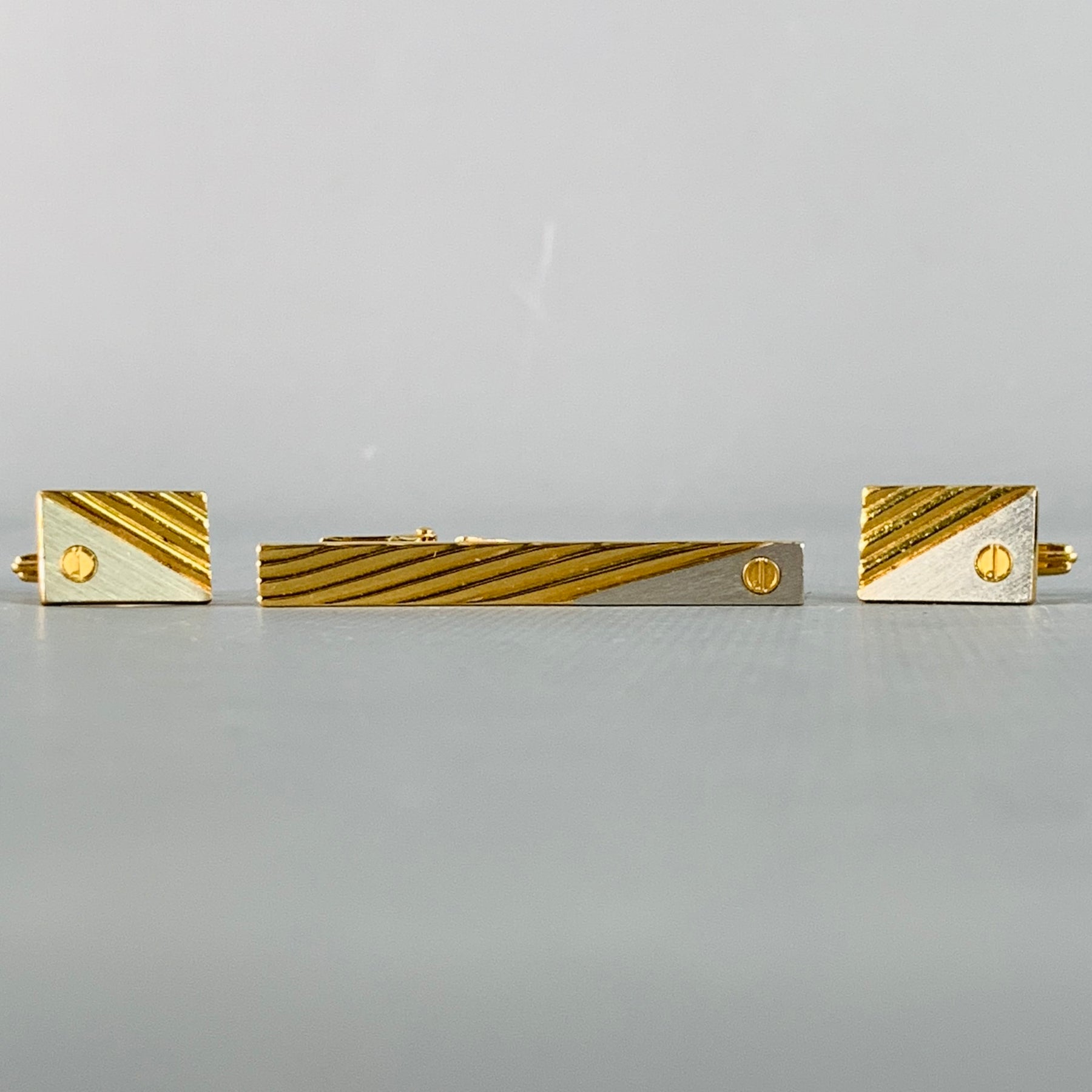 DUNHILL cufflinks & tie clip set in a gold tone and silver tone metal featuring a diagonal stripe engraved design with monogram.
