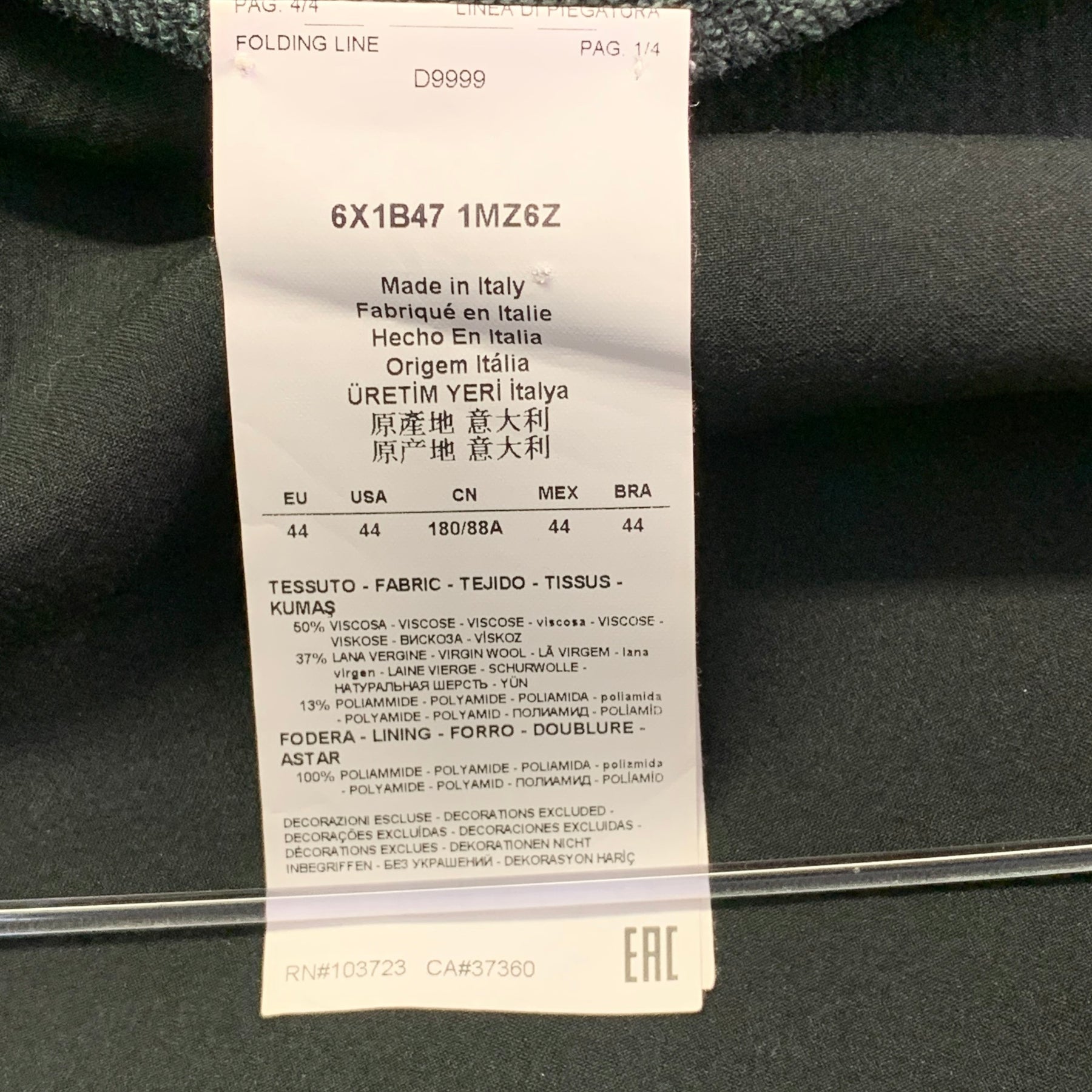 EMPORIO ARMANI Size 34 Green Blue Wool Viscose Blend Velvet Zip Up Jacket