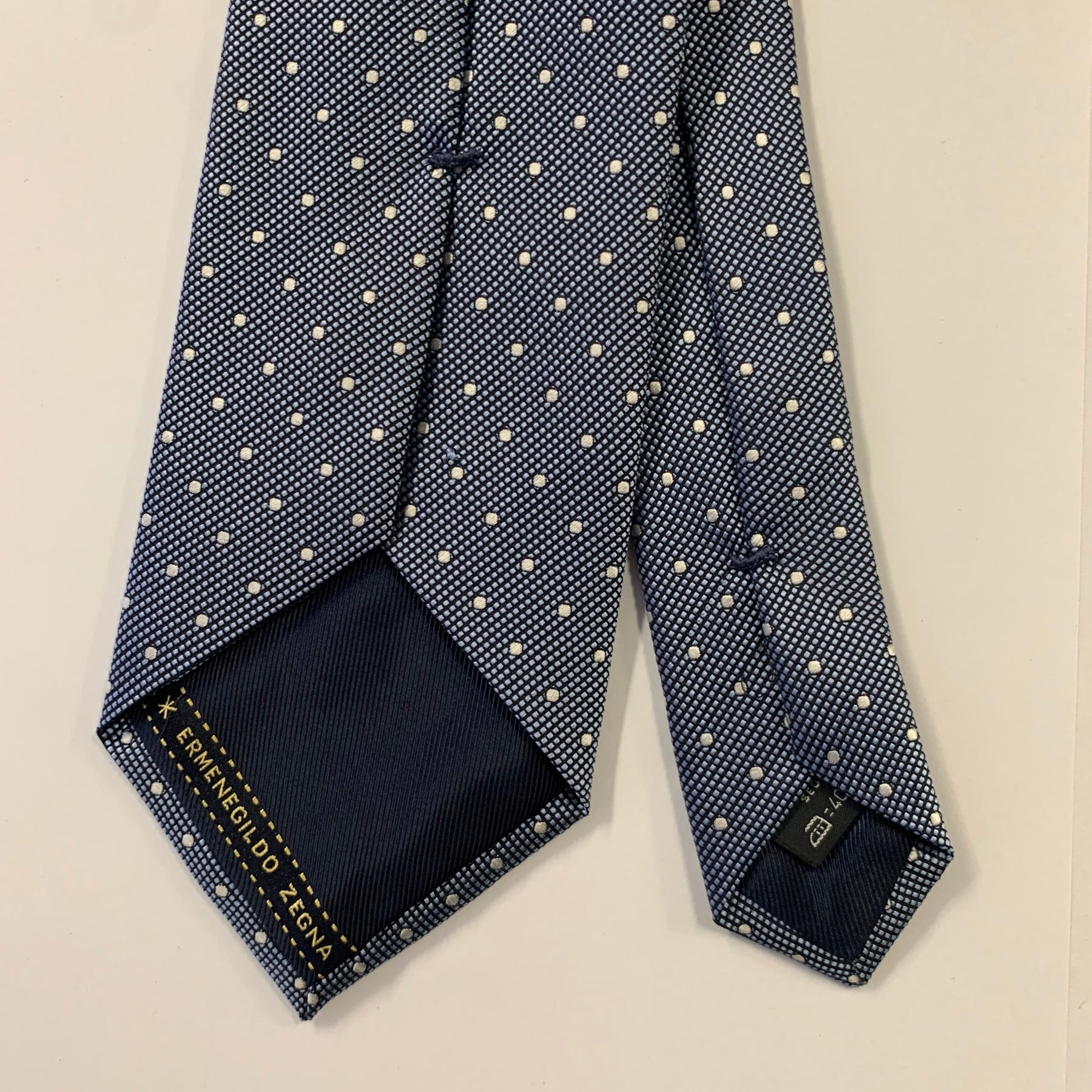 ERMENEGILDO ZEGNA Blue Silver Dots Silk Tie