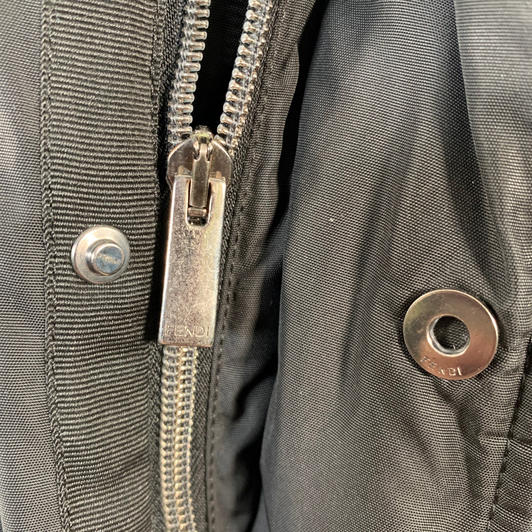 FENDI Size M Black Nylon Padded Hidden Hood Zip Snaps Jacket