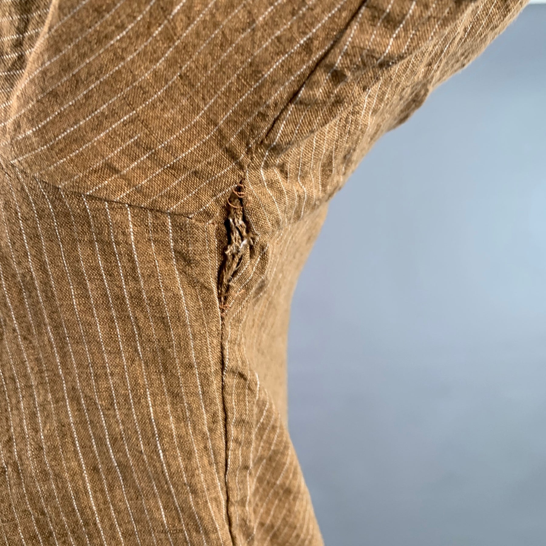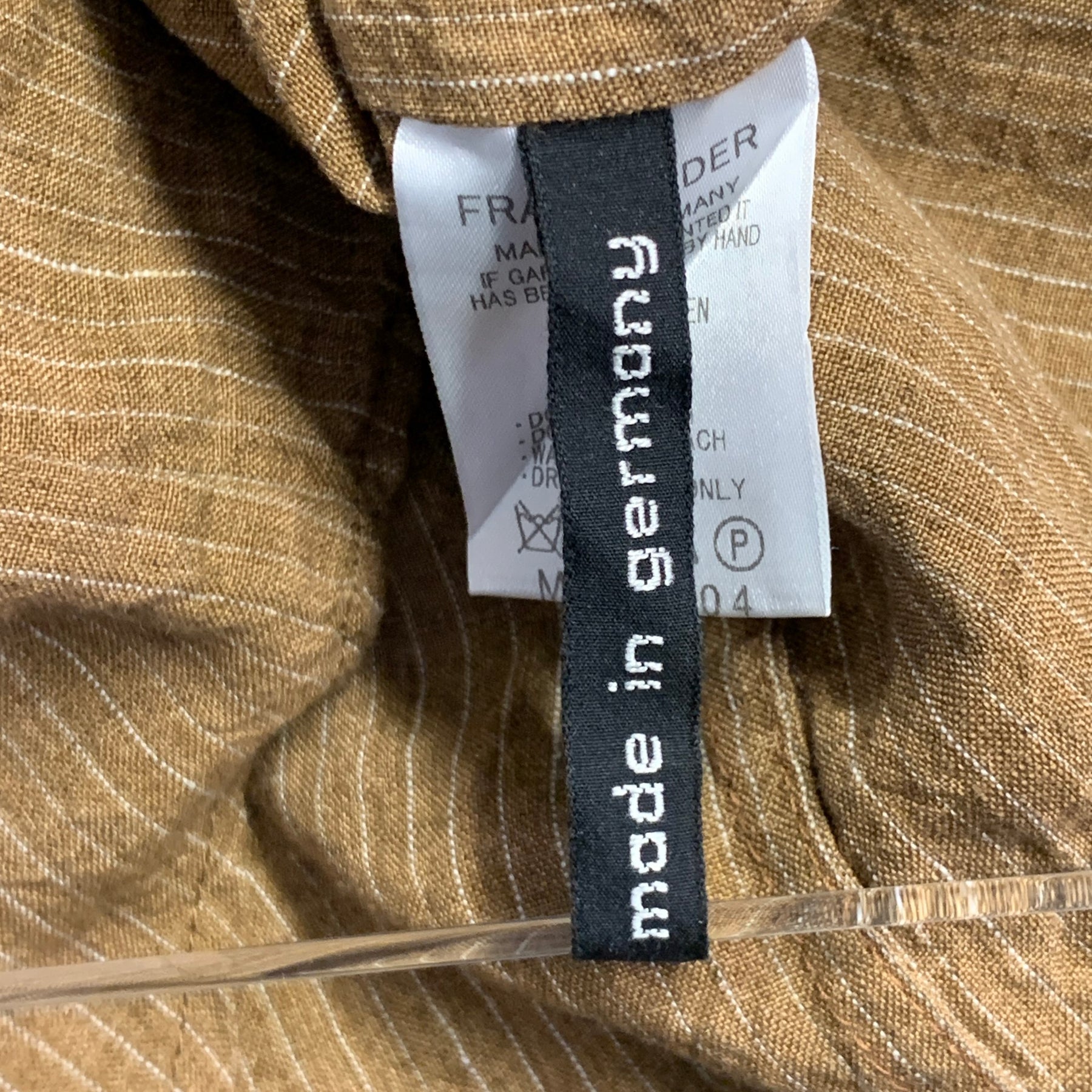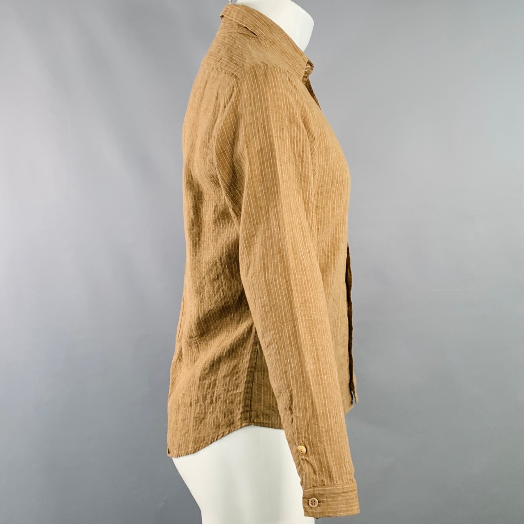 FRANK LEDER Size S Brown White Stripe Linen Spread Collar Long Sleeve Shirt