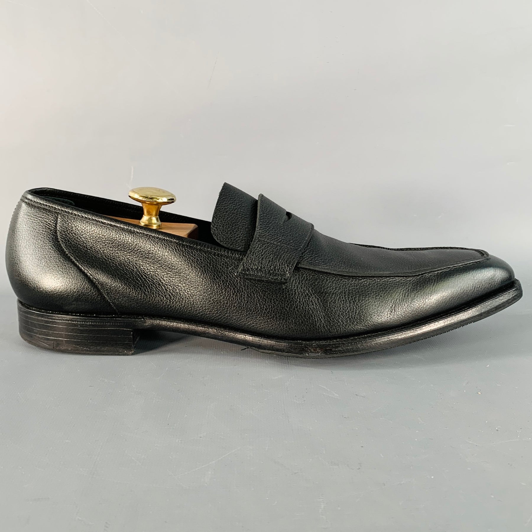 GEORGE CLEVERLEY Size 12 Black Pebble Grain Leather Penny Loafers