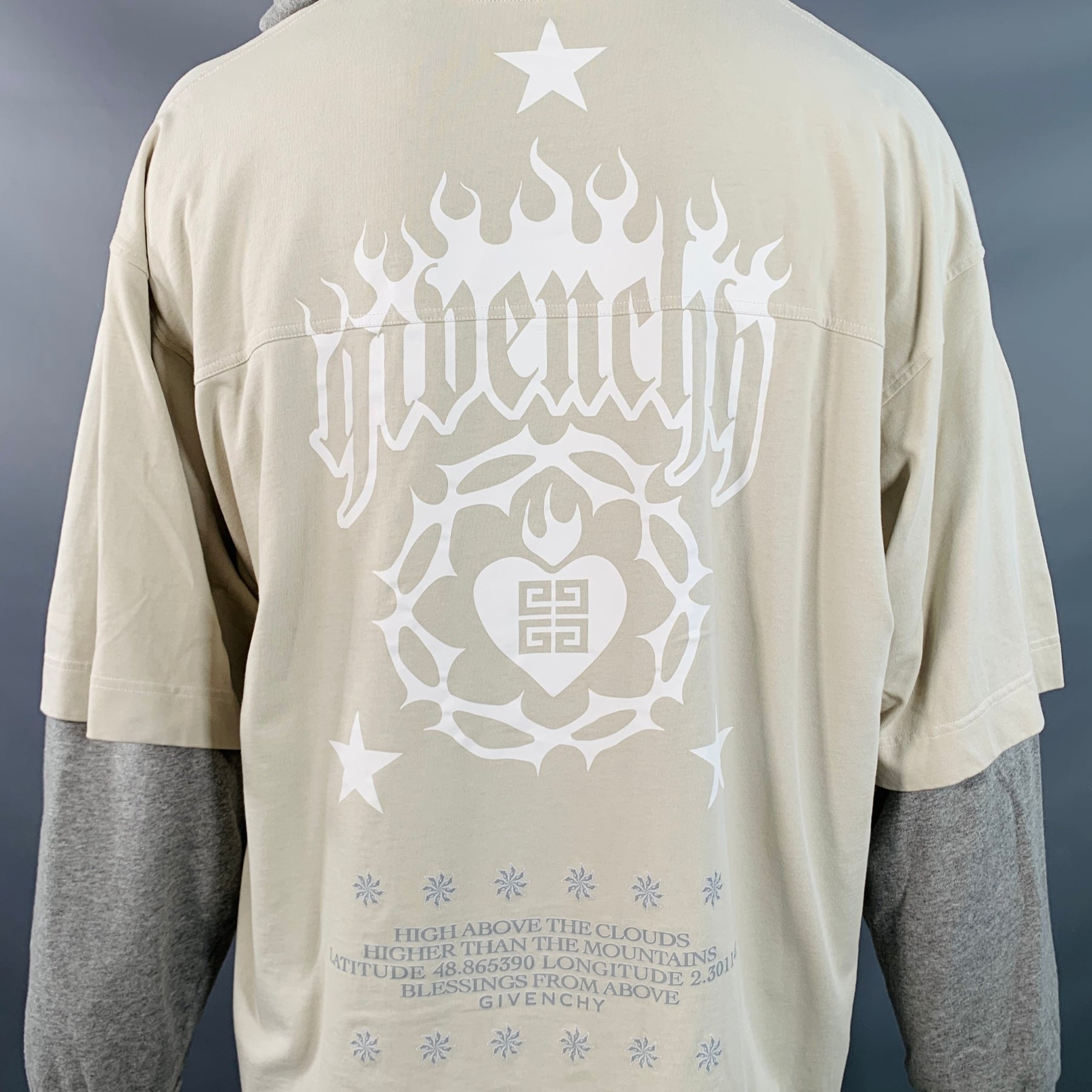 GIVENCHY Size L Cream Grey Jersey Double Layer Hooded Sweatshirt