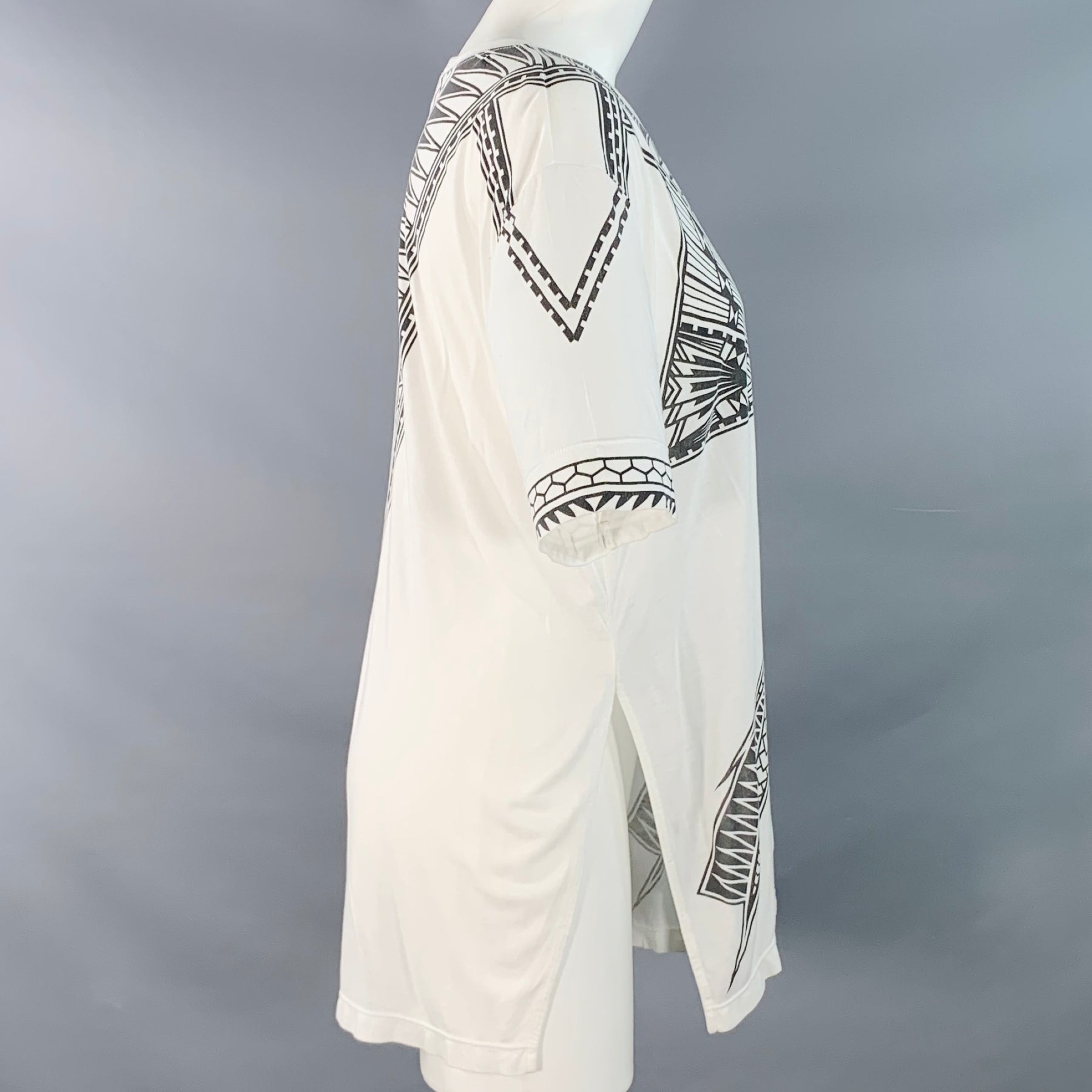 HERVE LEGER Size M White Black Modal Geometric Crew Neck T-Shirt