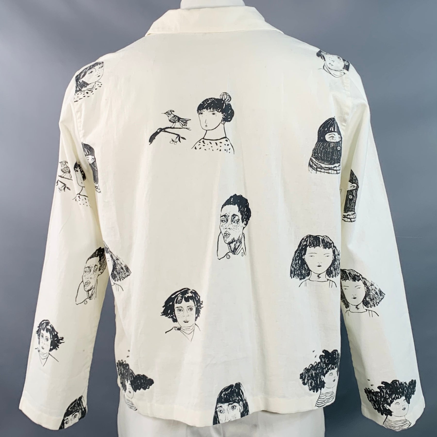 HOMBRE NECIO Size XL Beige Black Figures Print Linen Cotton Jacket