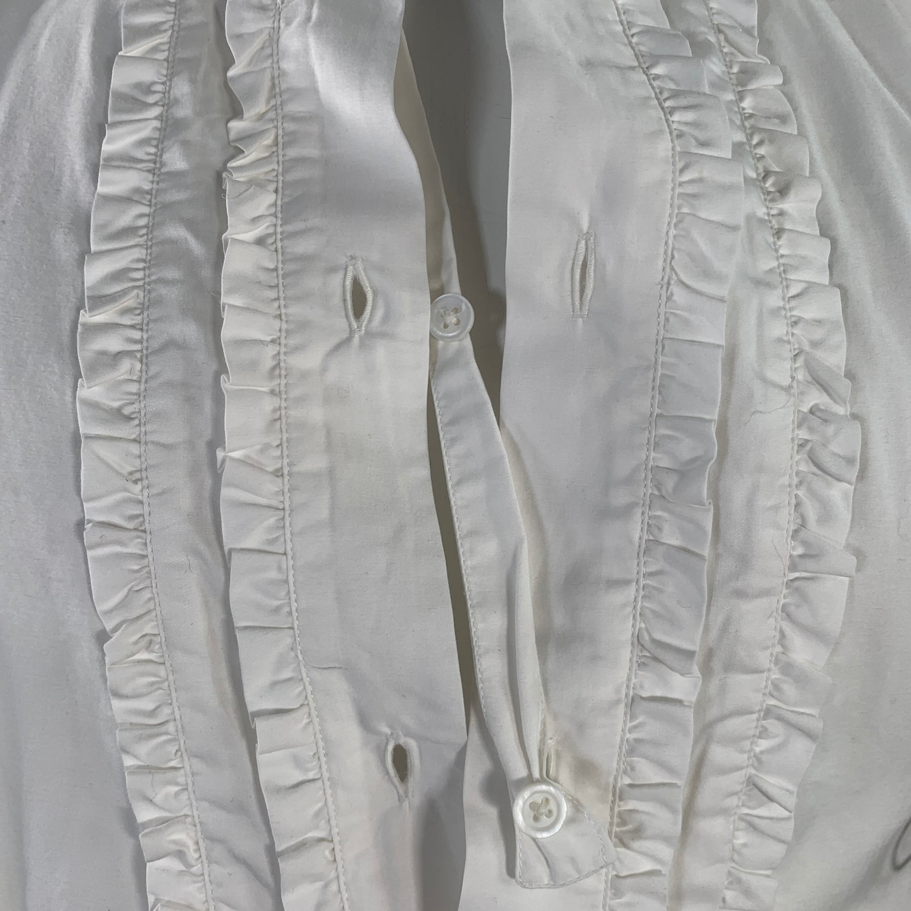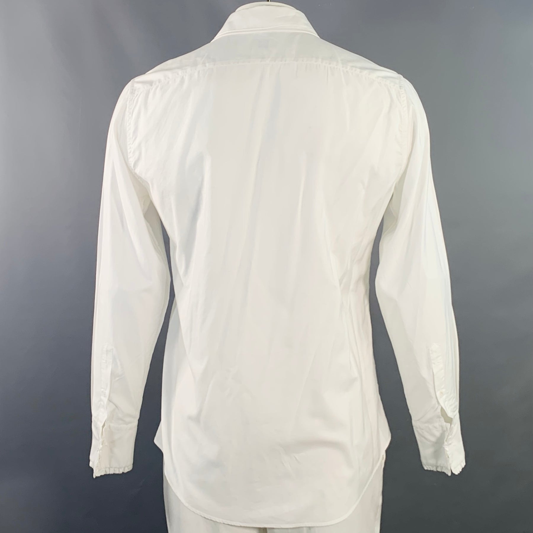 JIL SANDER Size 42 White Ruffled Cotton Tuxedo Long Sleeve Shirt