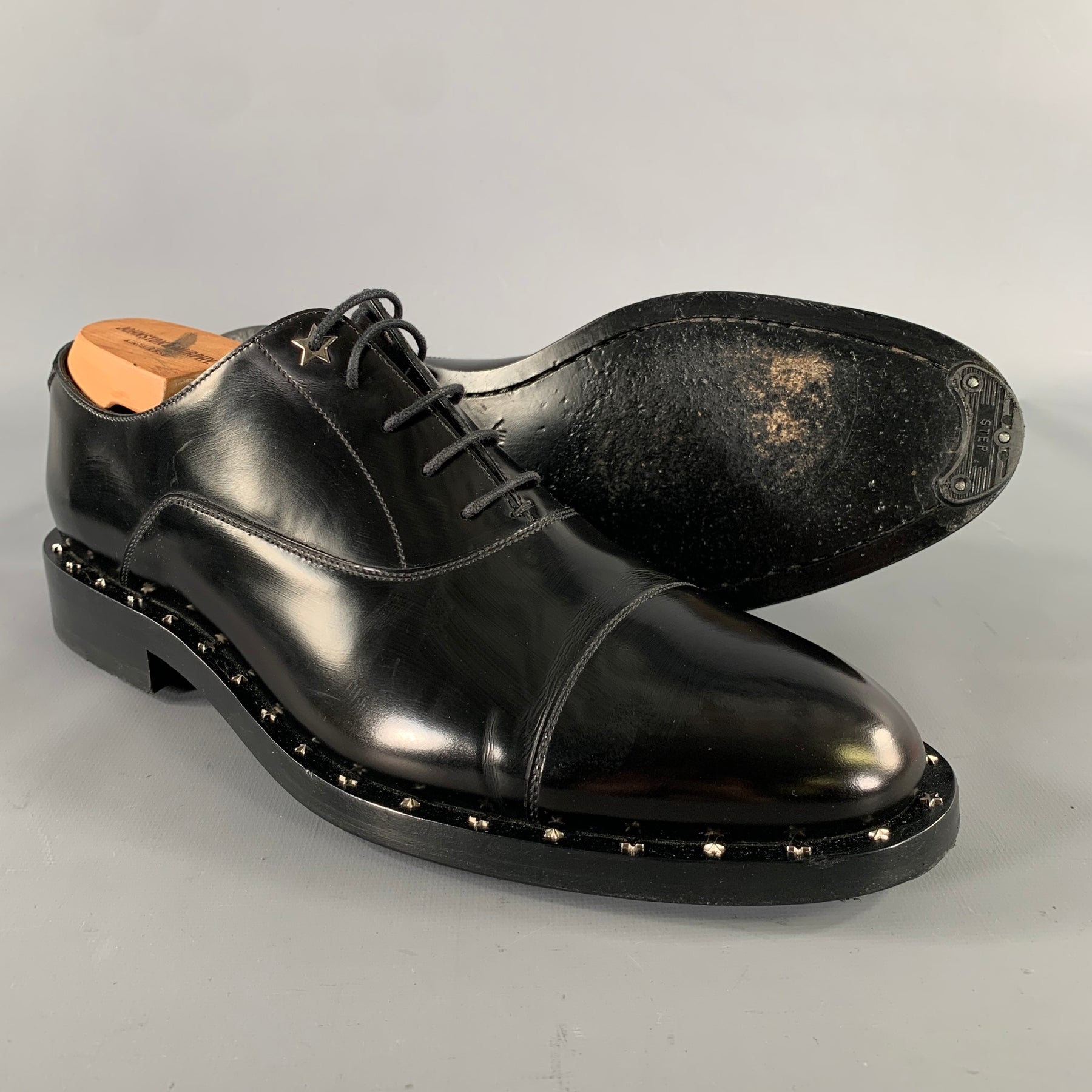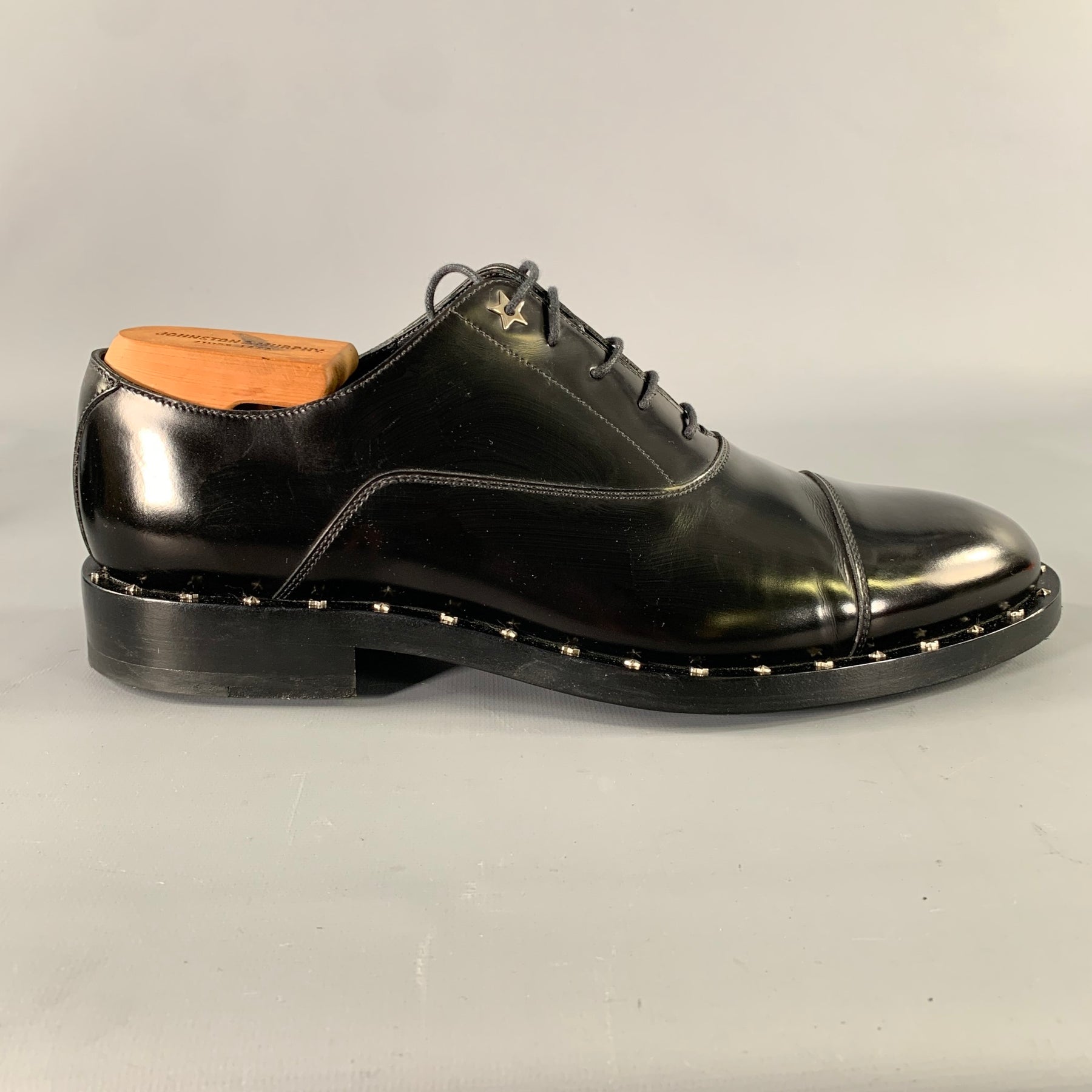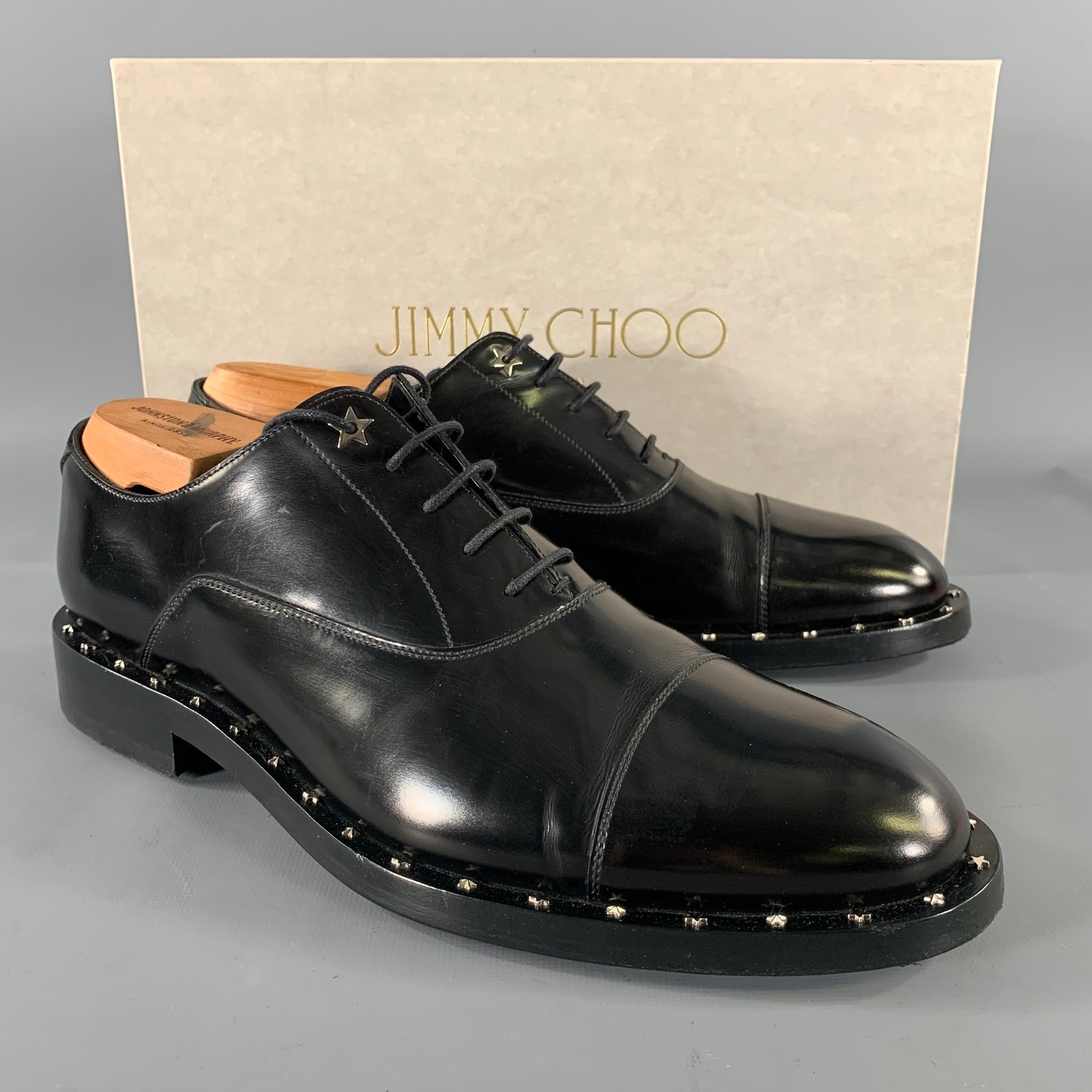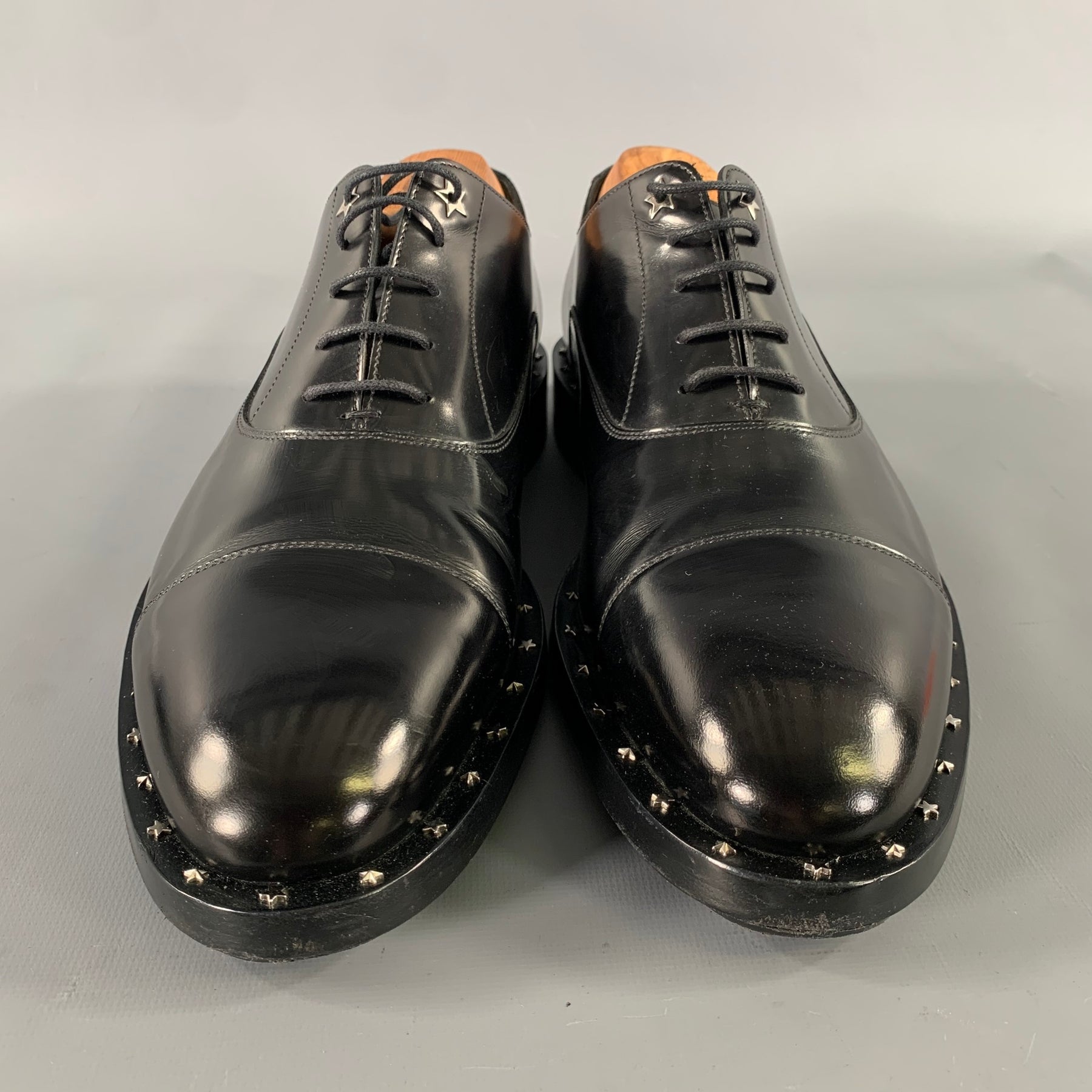 JIMMY CHOO Size 8 Black Studded Leather Cap Toe Lace Up Shoes