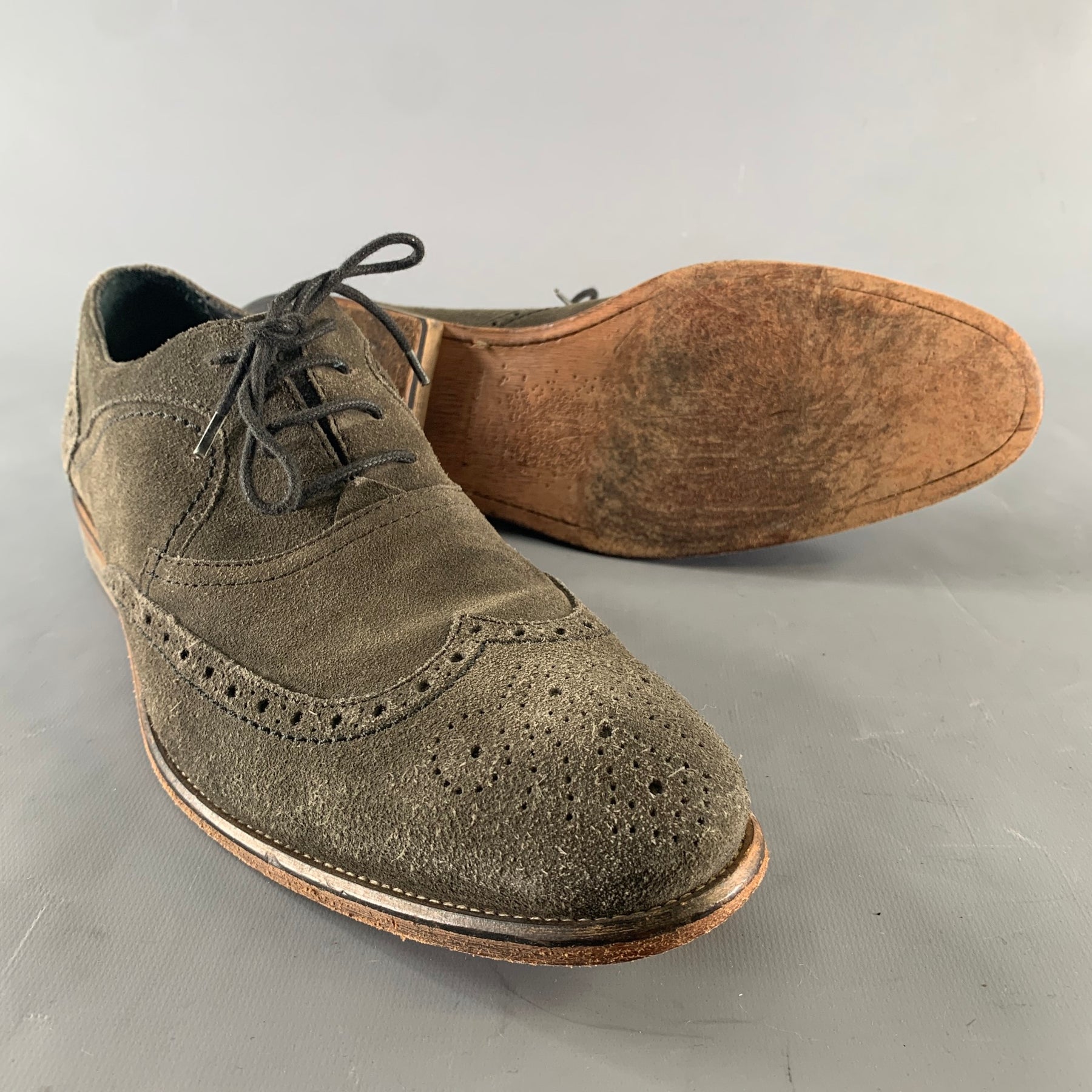 JOHN VARVATOS Size 9 Gray Suede Dress Lace Up Shoes