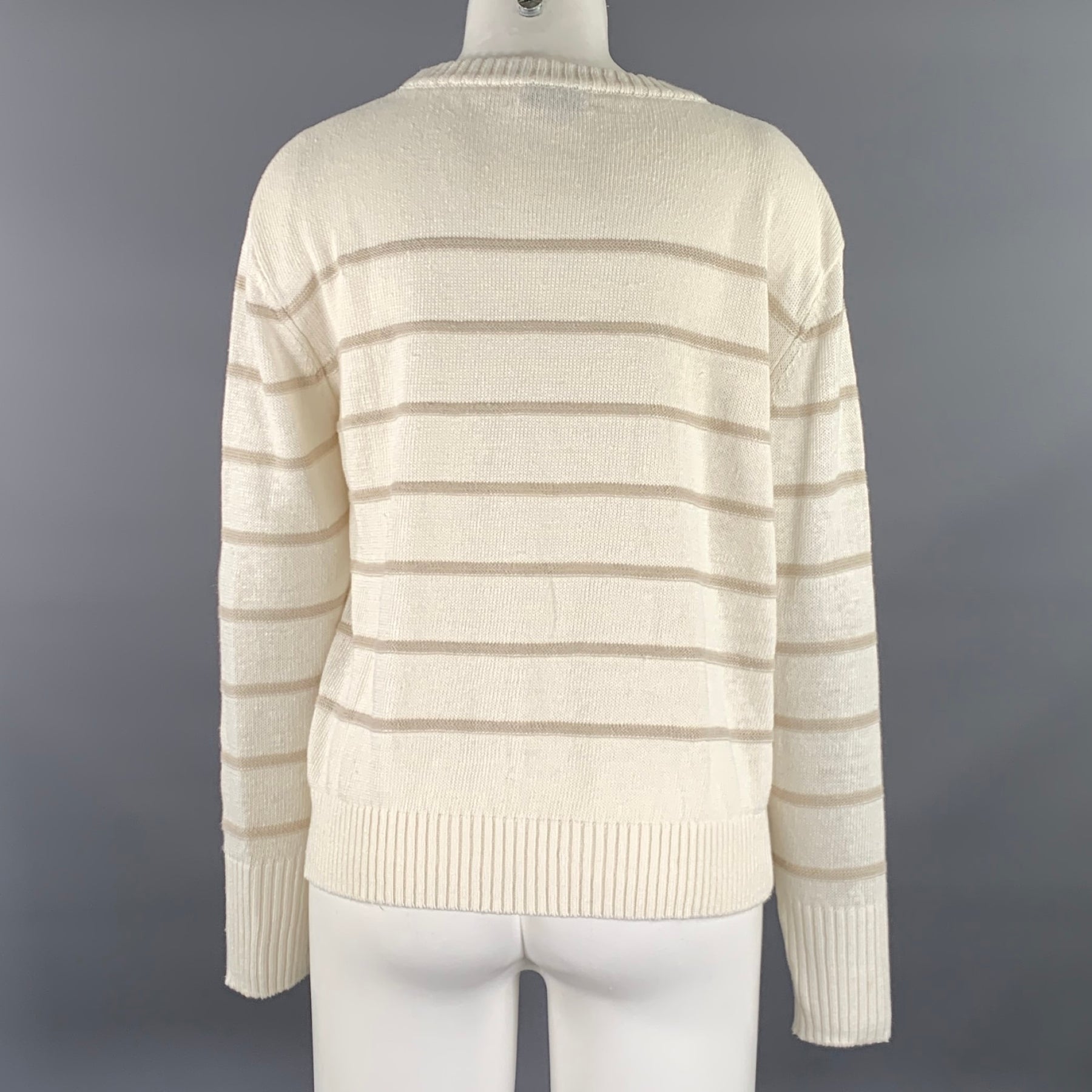 KINROSS Size M Cream Tan Linen Stripe Pull On Sweater