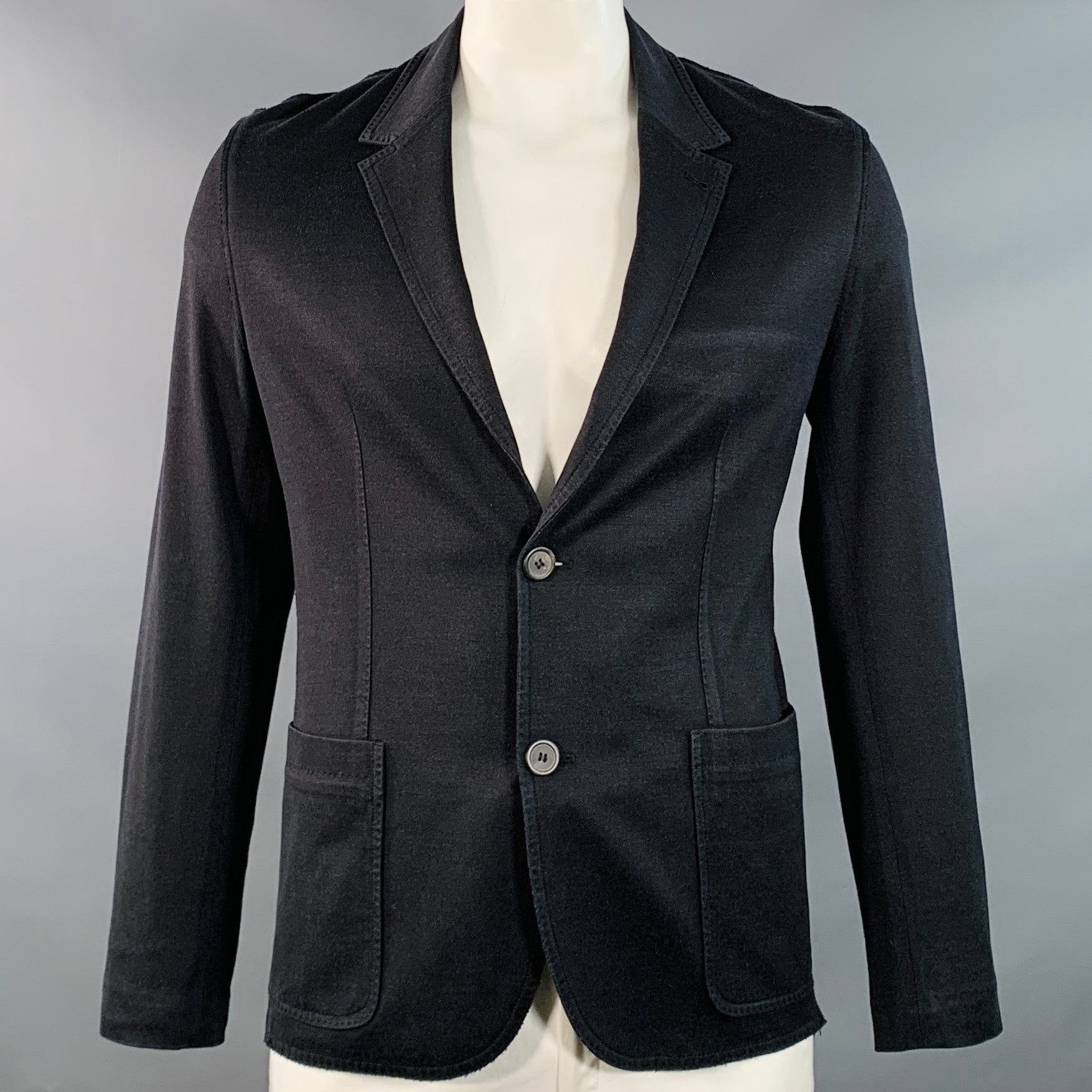 LANVIN Size L Black Silk Cotton Notch Lapel Jacket