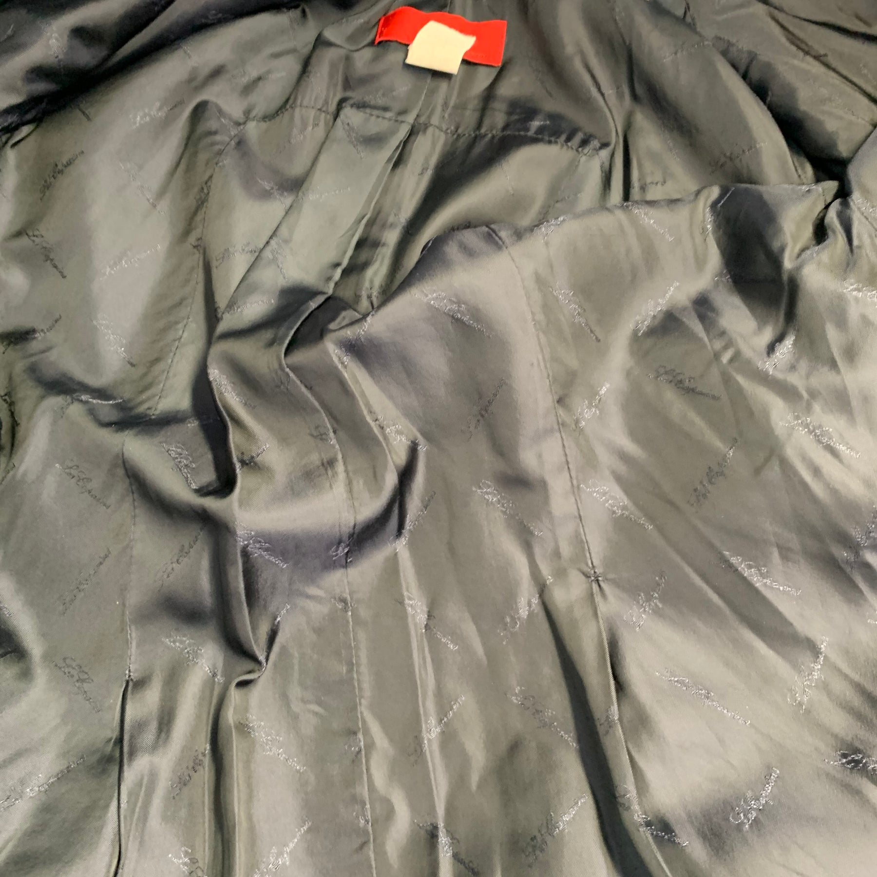 LES COPAINS Size S Black Red White Wool Plaid Collarless Belted Coat