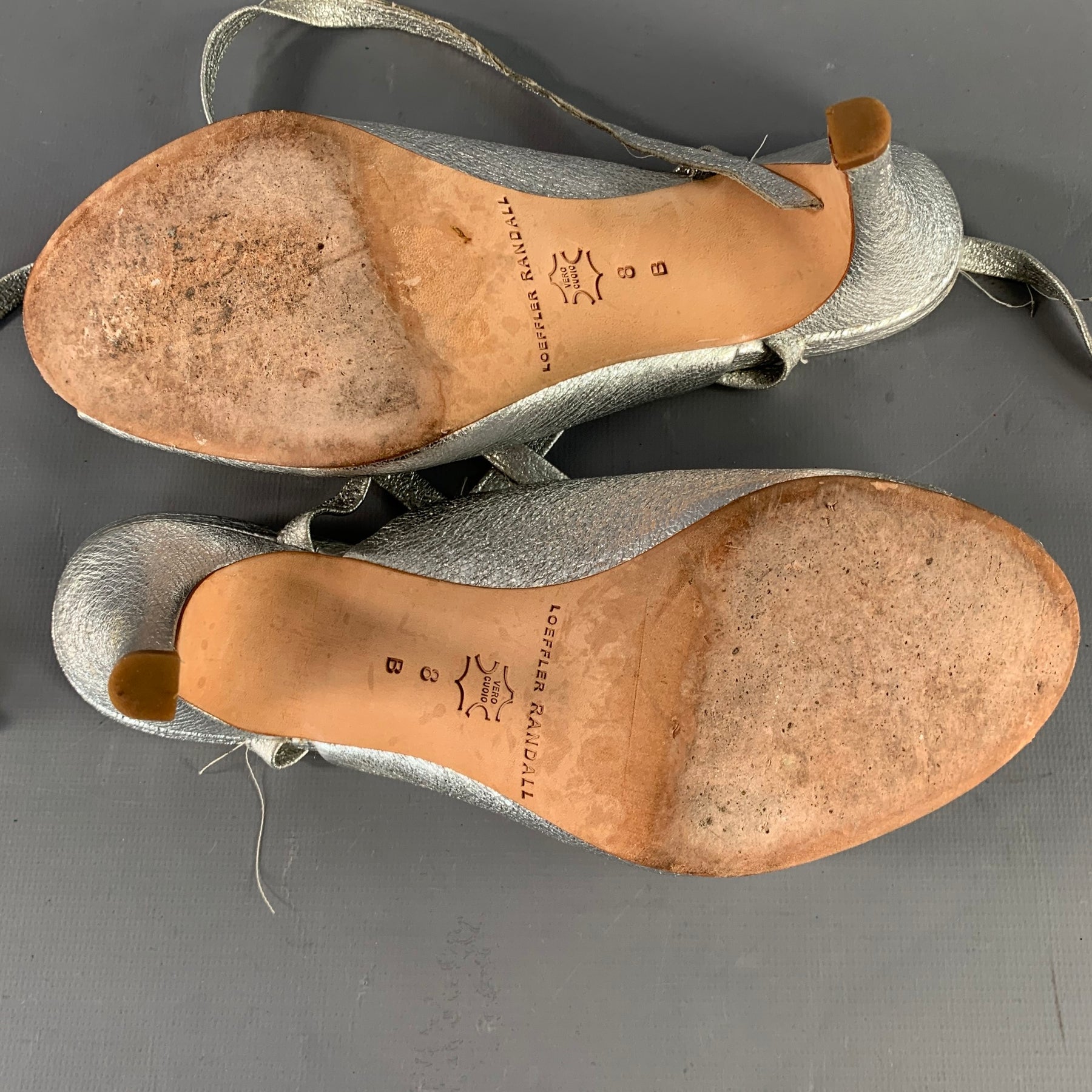 LOEFFLER RANDALL Size 8 Metallic Silver Crinkled Leather Ankle Strap Pumps