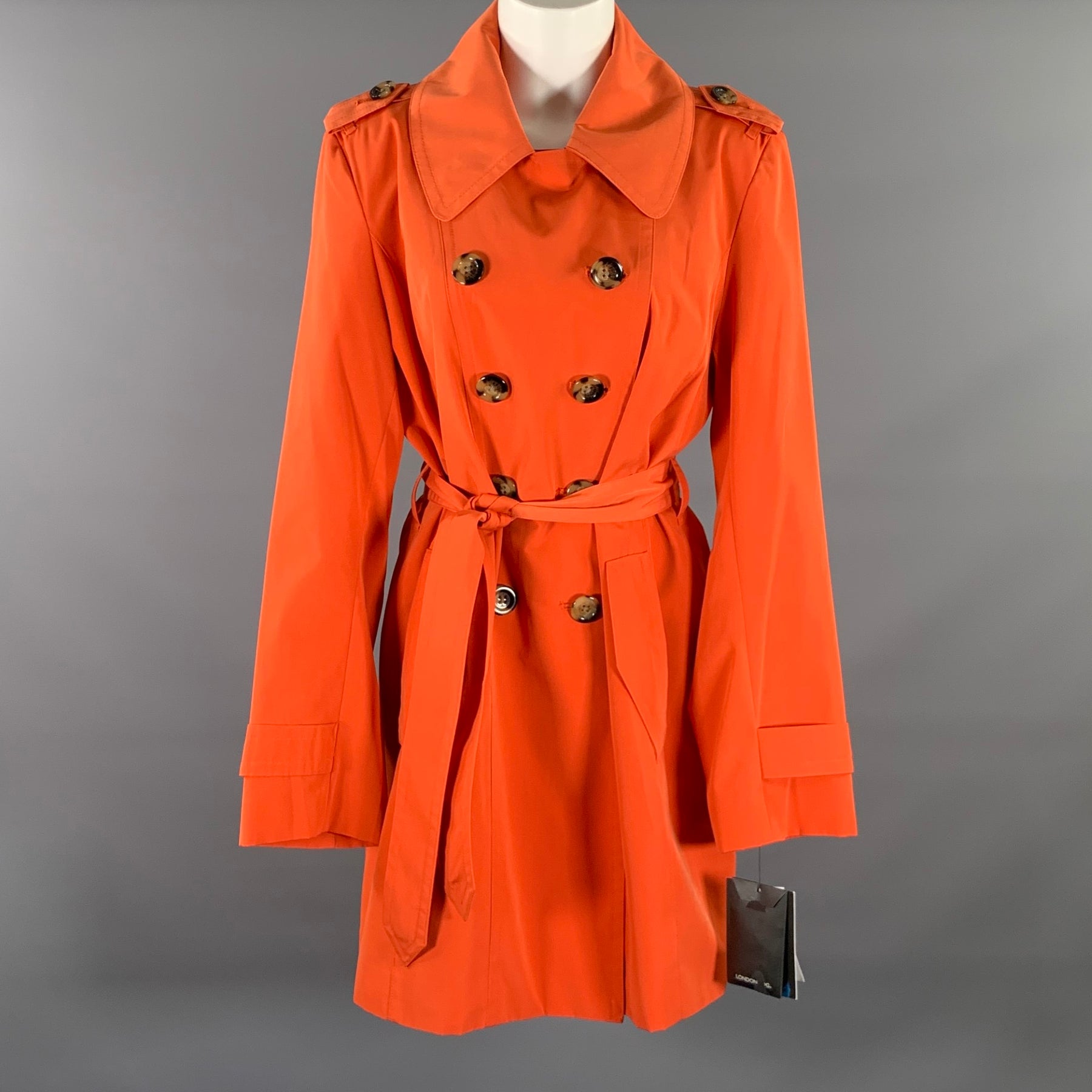 LONDON FOG Size L Orange Polyester Double Breasted Trench Coat