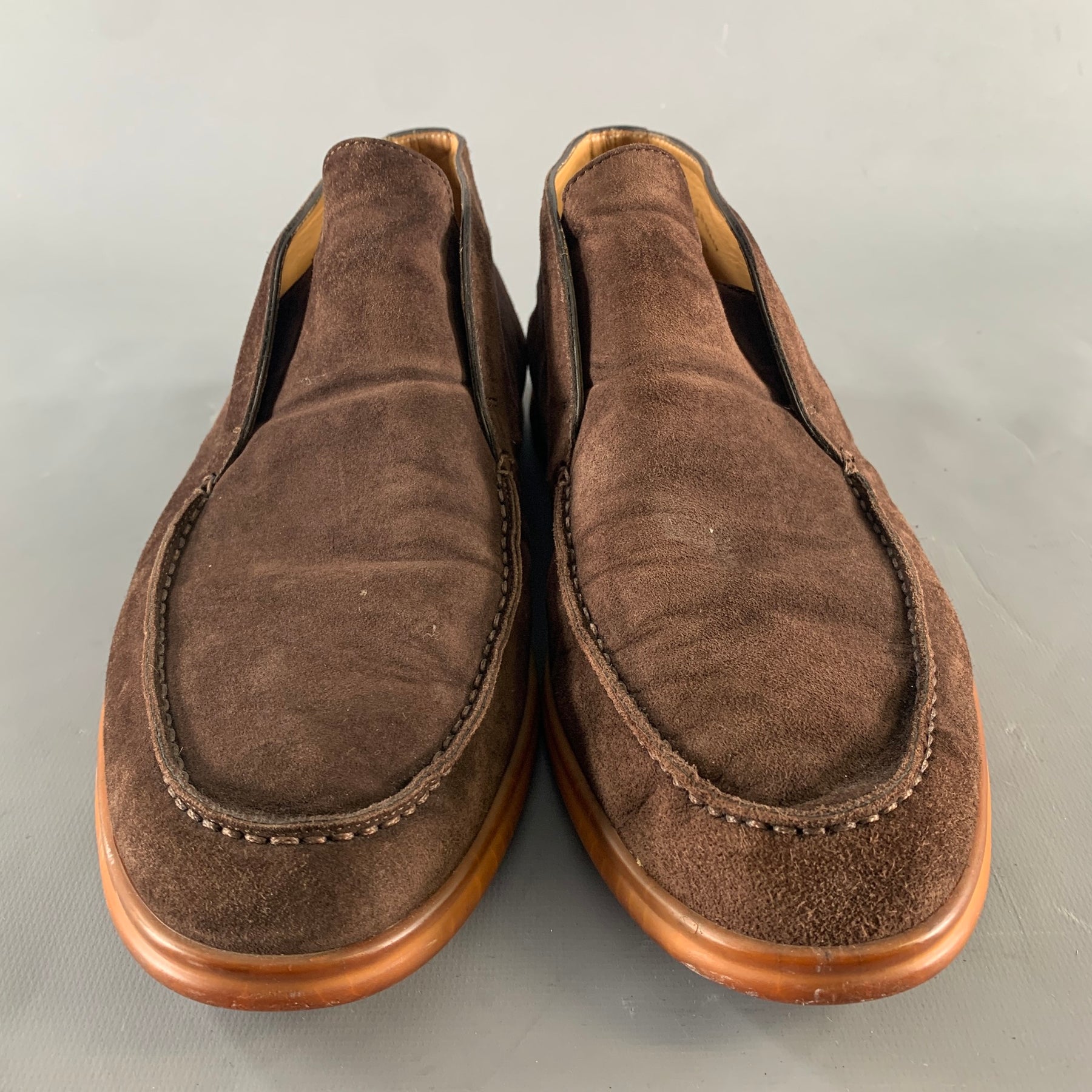 LORO PIANA Size 10 Brown Solid Suede Slip On Loafers