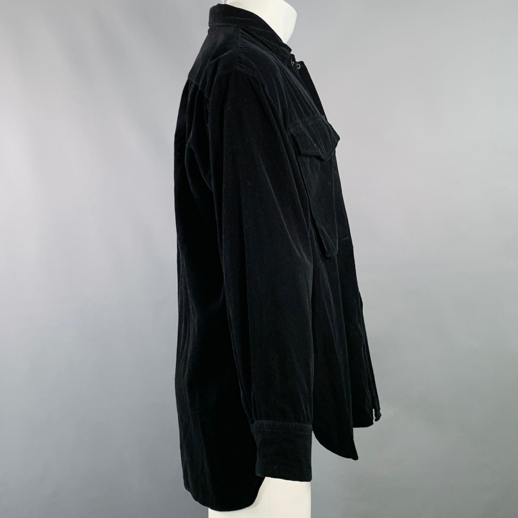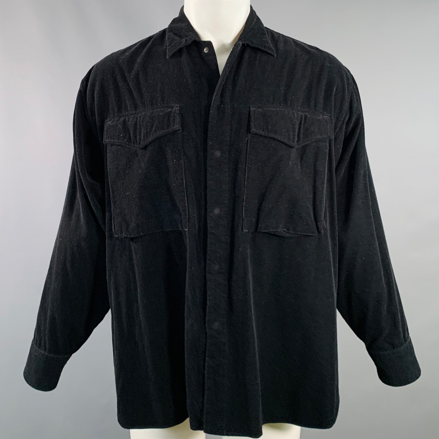 MARKAWARE Size M Black Corduroy Cotton Oversized Two Pockets Long Sleeve Shirt