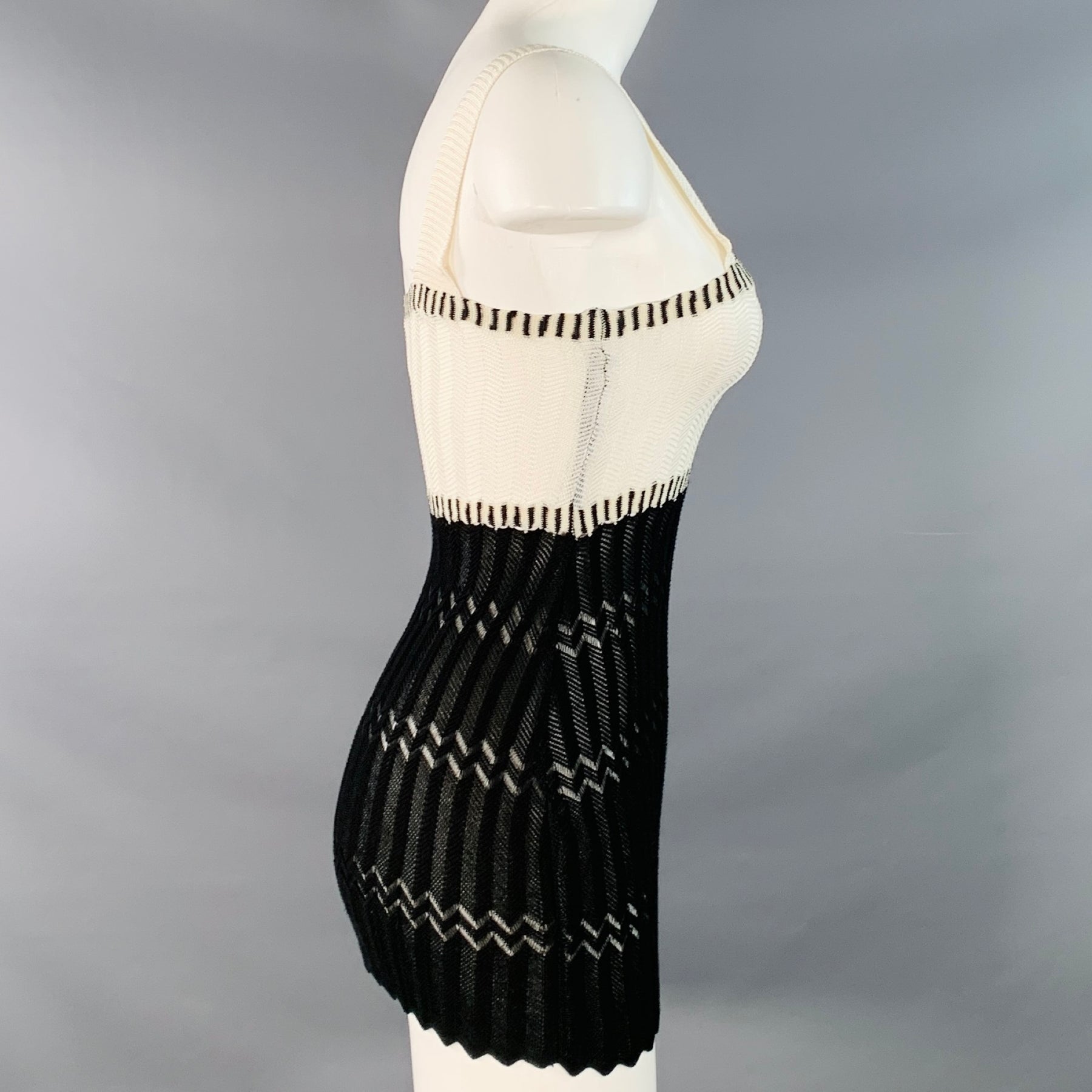 MISSONI Size 2 White Black Viscose Cotton Chevron Knit Two Tone Tank Casual Top