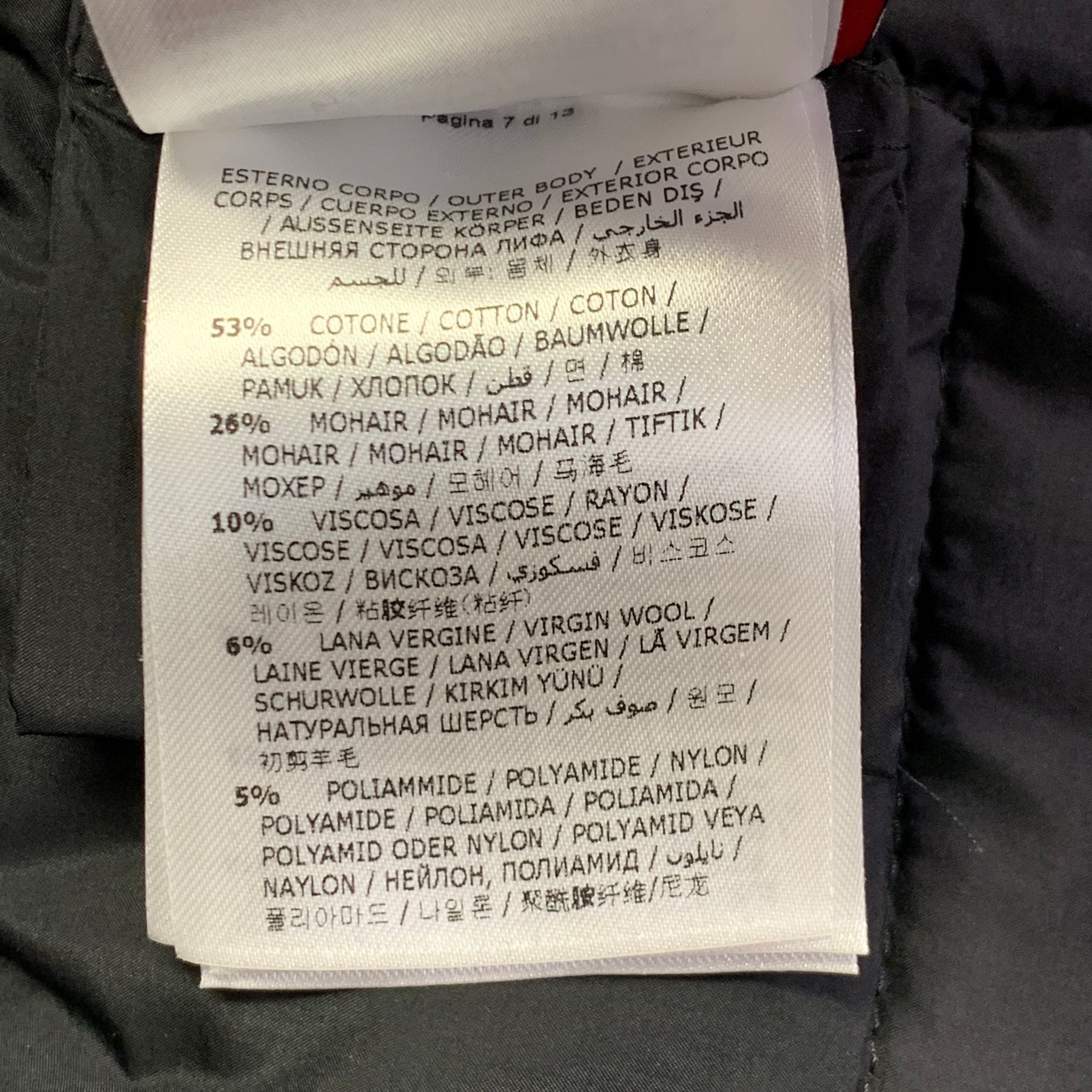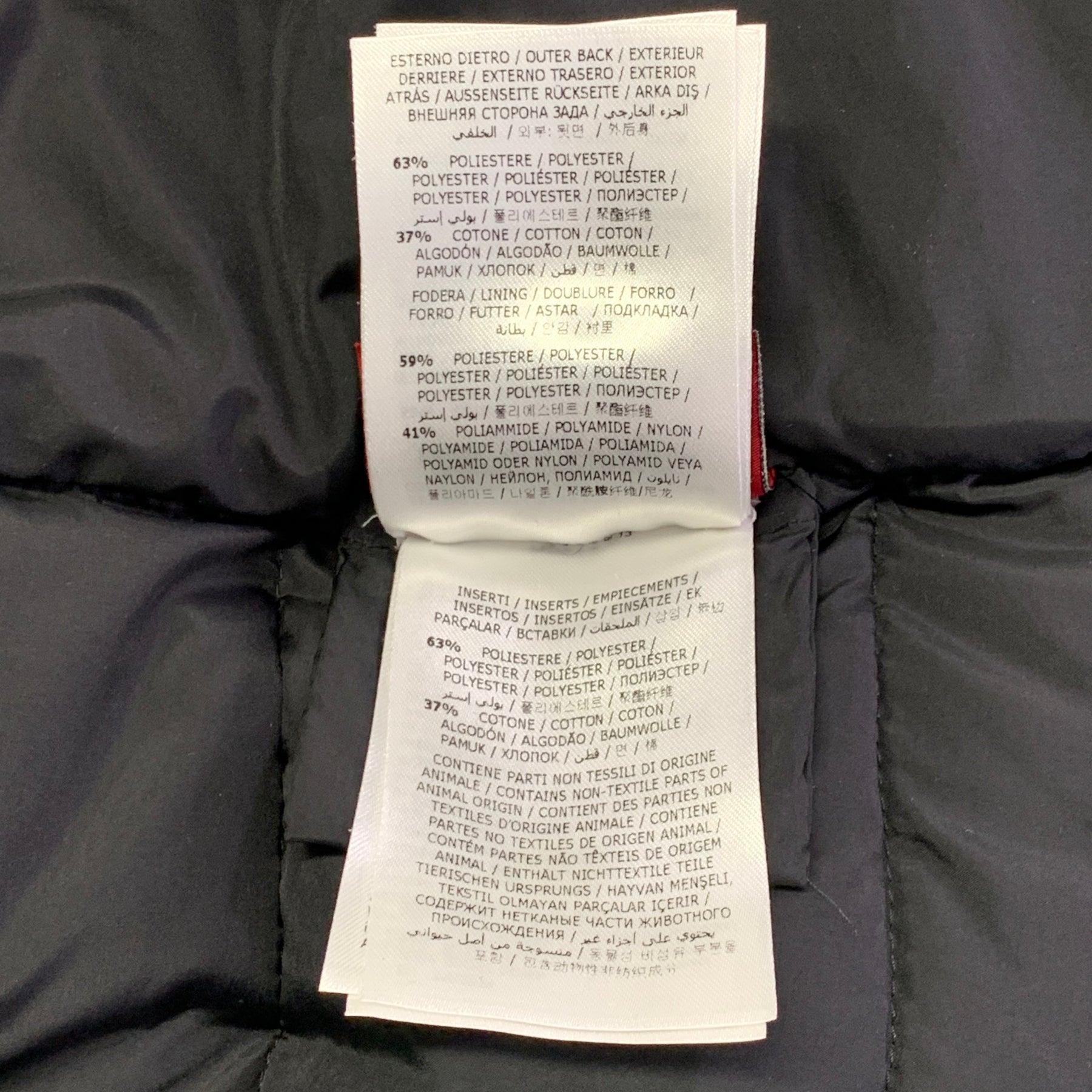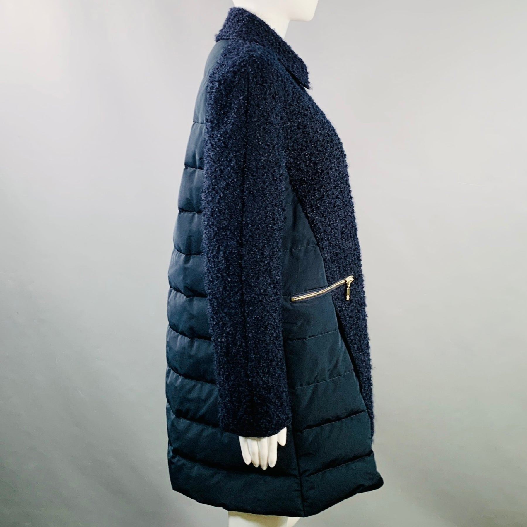 MONCLER by GIAMBATTISTA VALLI "Cathy" coat in a navy cotton blend faux fur featuring quilted side panels, zip pockets, and zip up closure.