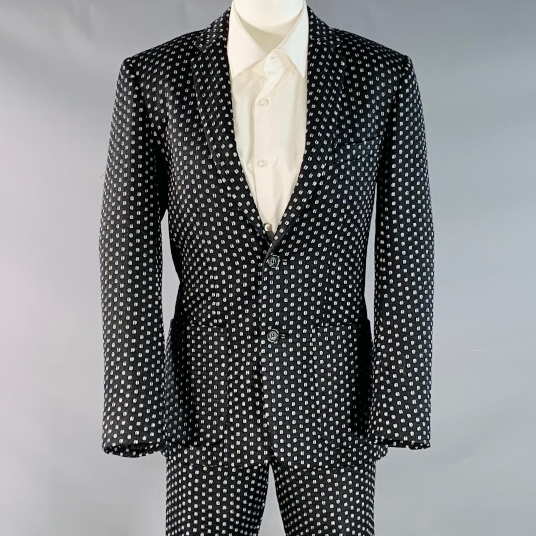 MR TURK Size 36 Regular Black White Perforated Polyester Notch Lapel Suit