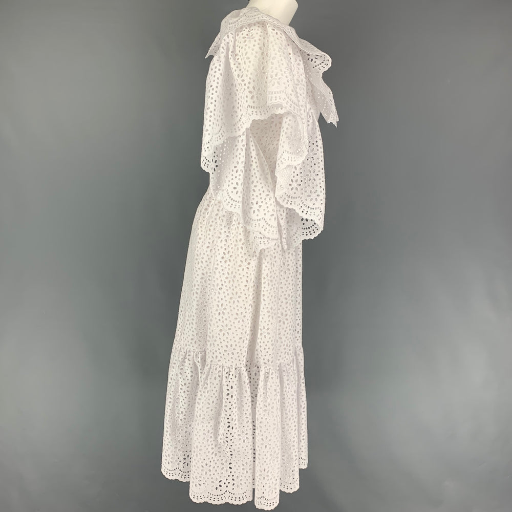 MSGM Size 4 White Cotton Eyelet Ruffle Dress