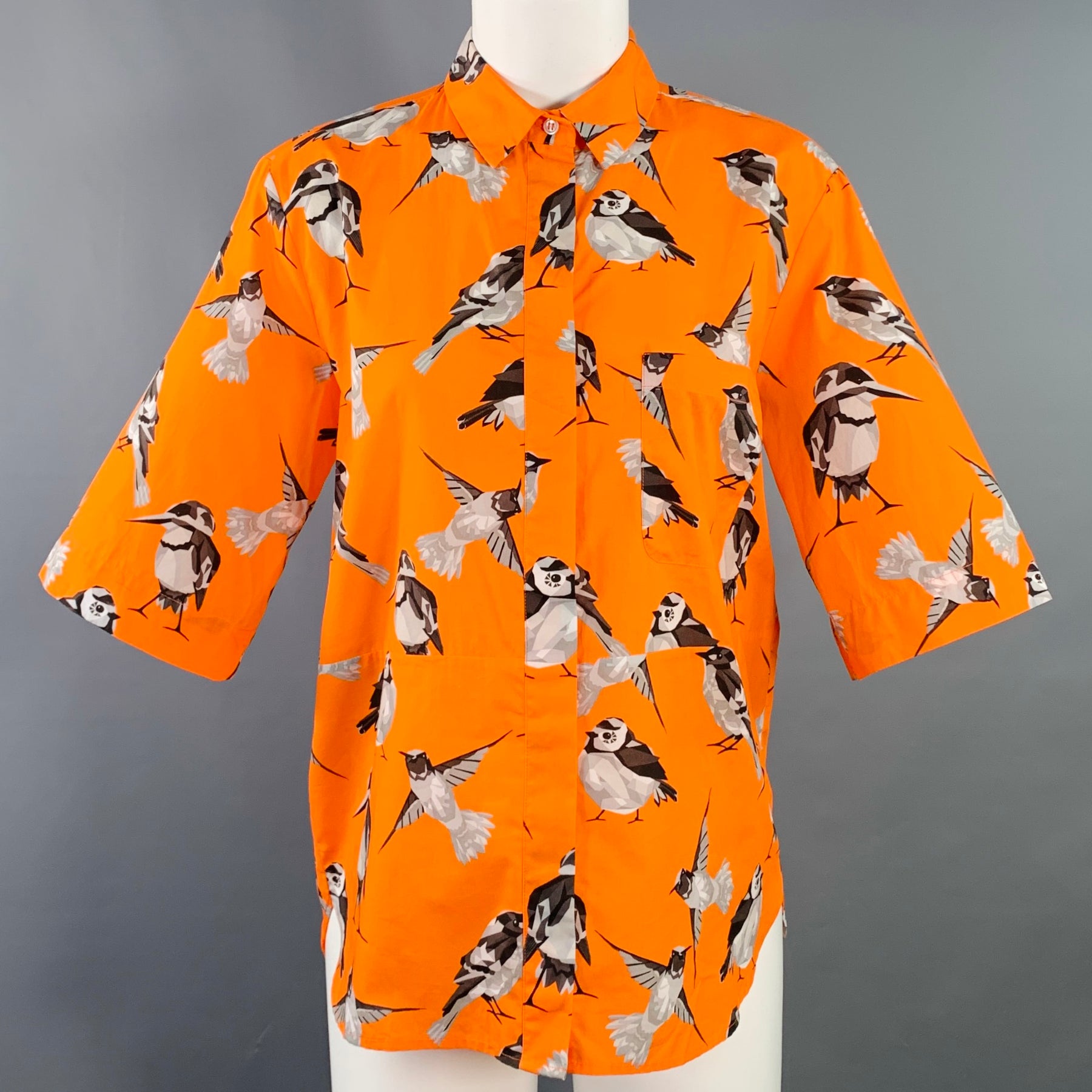 MSGM Size M Orange Black White Cotton Birds One Pocket Short Sleeve Shirt