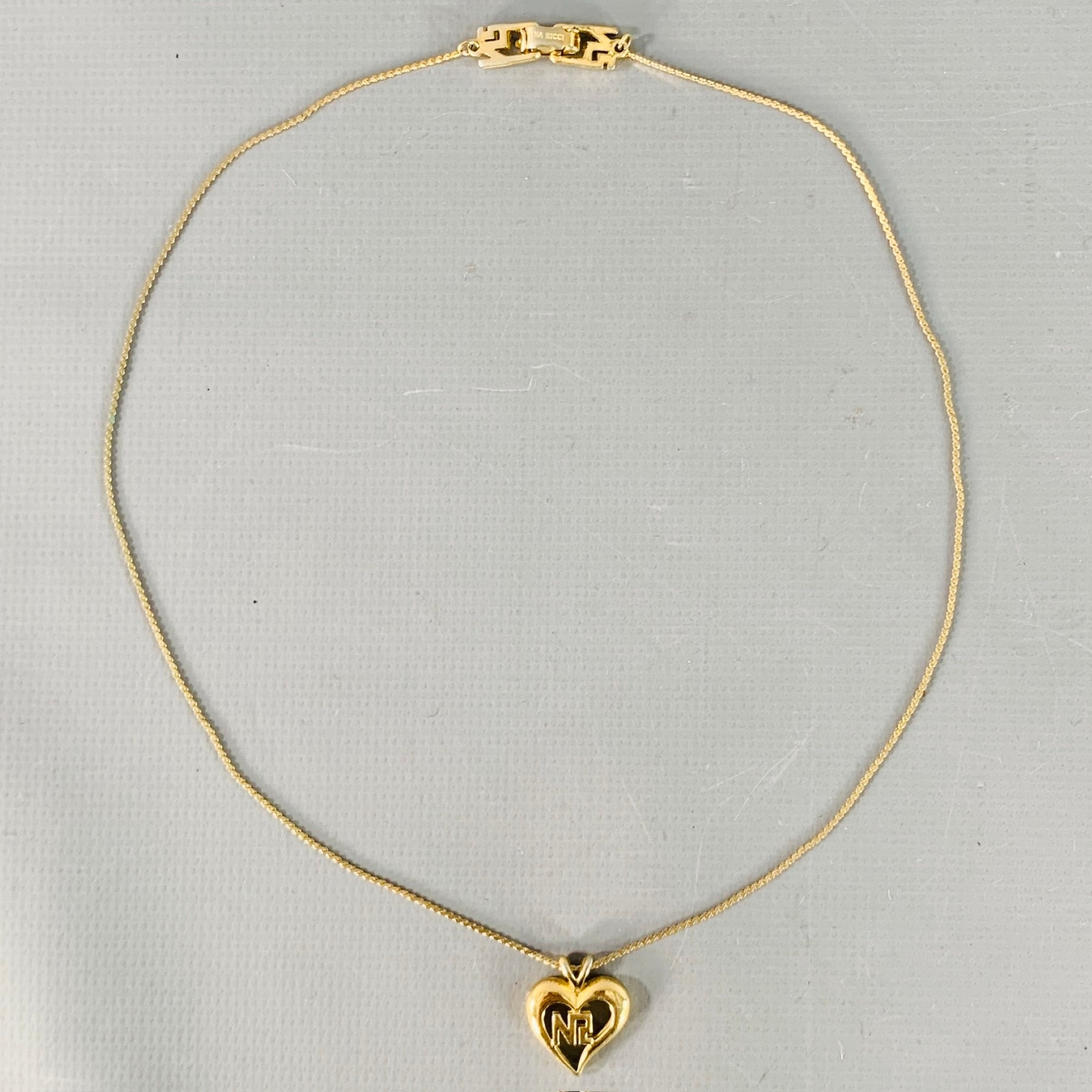 NINA RICCI Gold Metal Heart Monogram Pendant Necklace