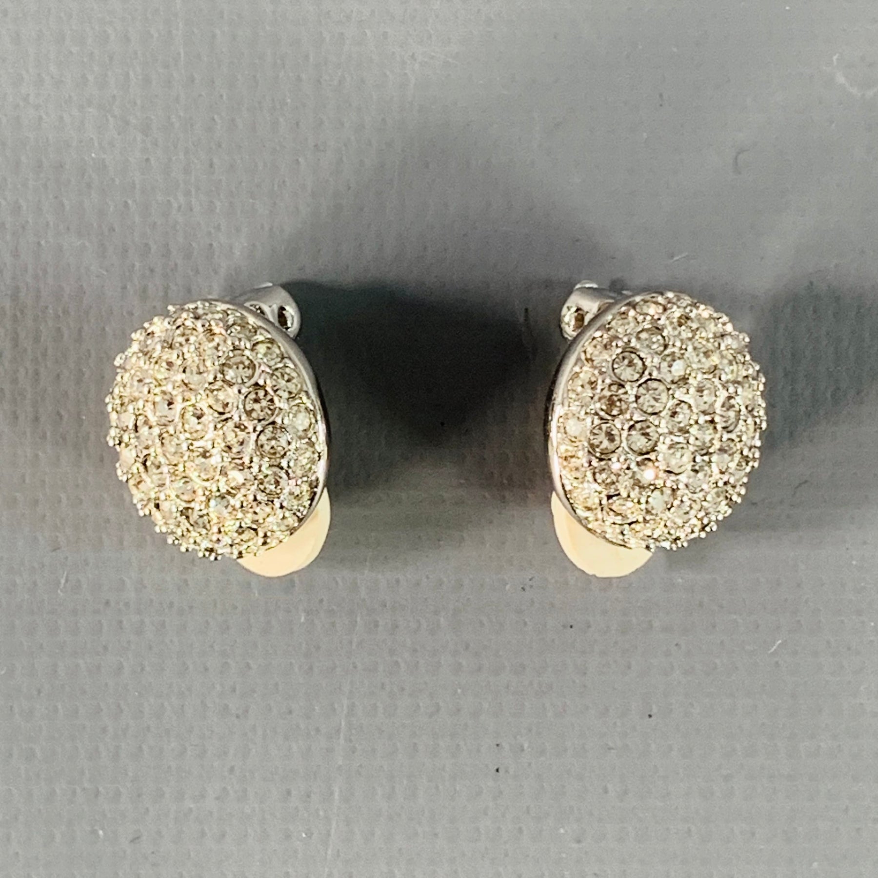 NINA RICCI Silver Rhinestones Metal Round Clip-On Earrings