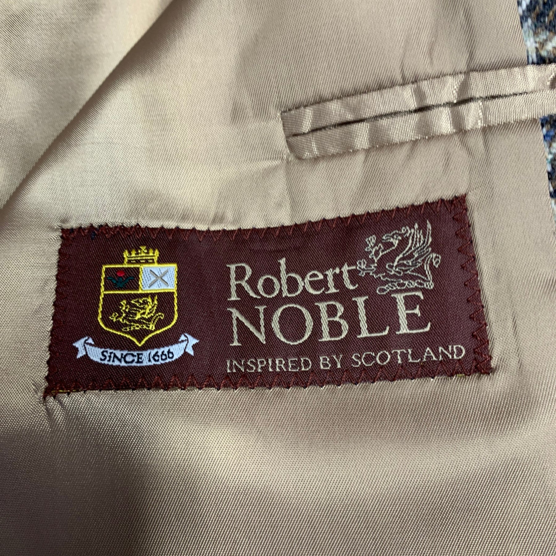 O'CONNELL's sport coat in a beige, red, and brown virgin wool fabric featuring a plaid pattern, notch lapel, single vented back, and three button closure. Made with ROBERT NOBLE fabric.