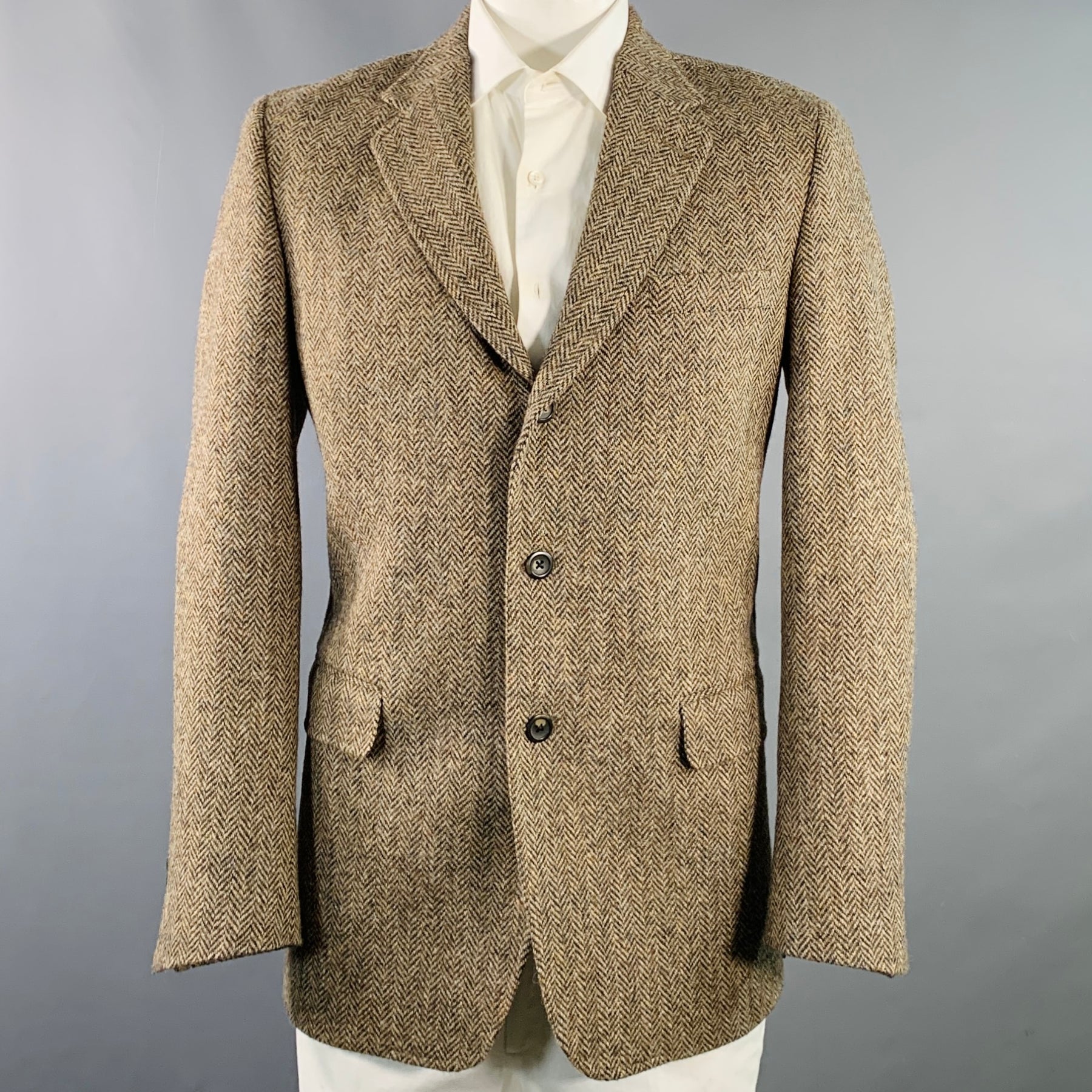SOUTHWICK for O'CONNELL'S sport coat in a brown wool fabric featuring a herringbone pattern, notch lapel, single vented back, and three button closure. Made with HARRIS TWEED.