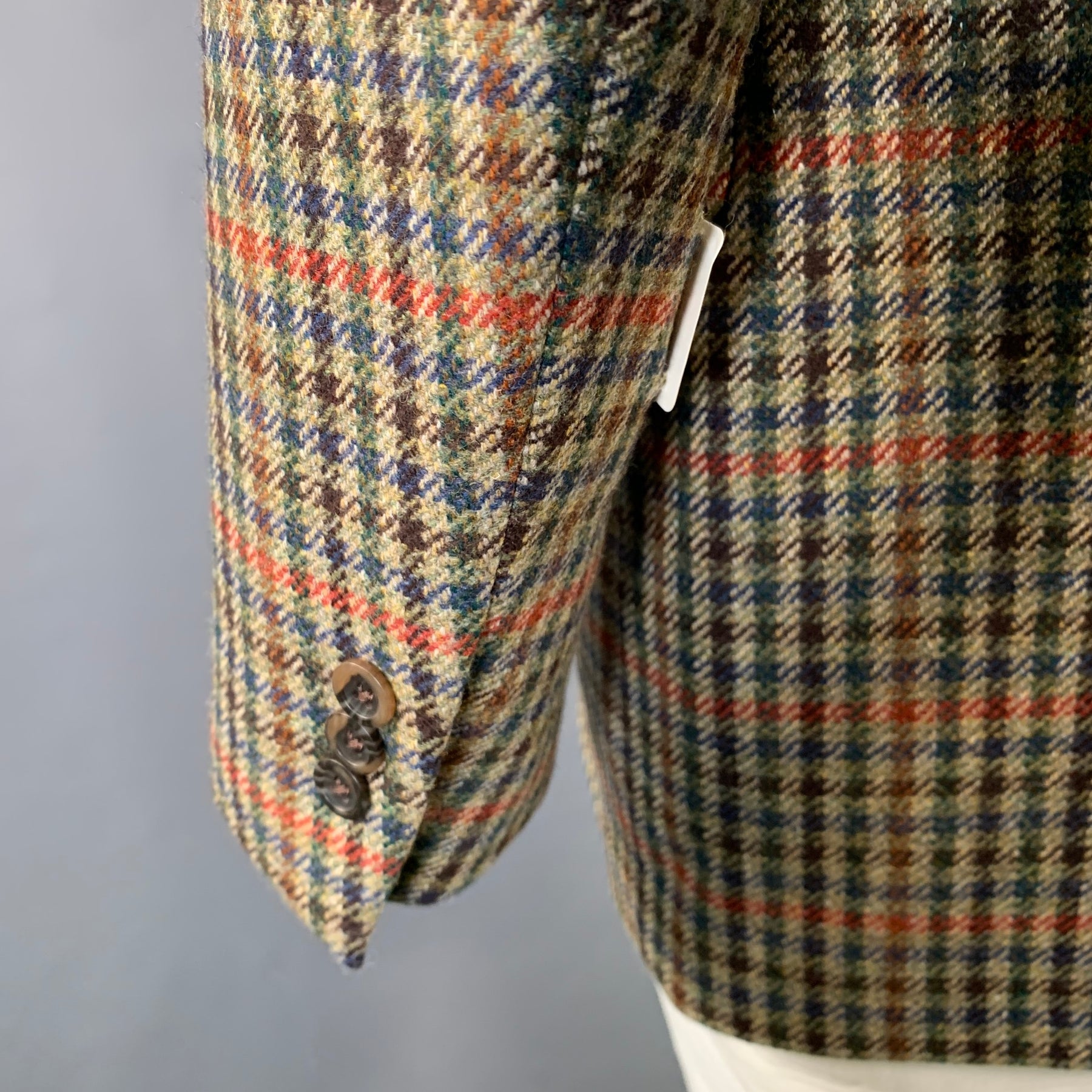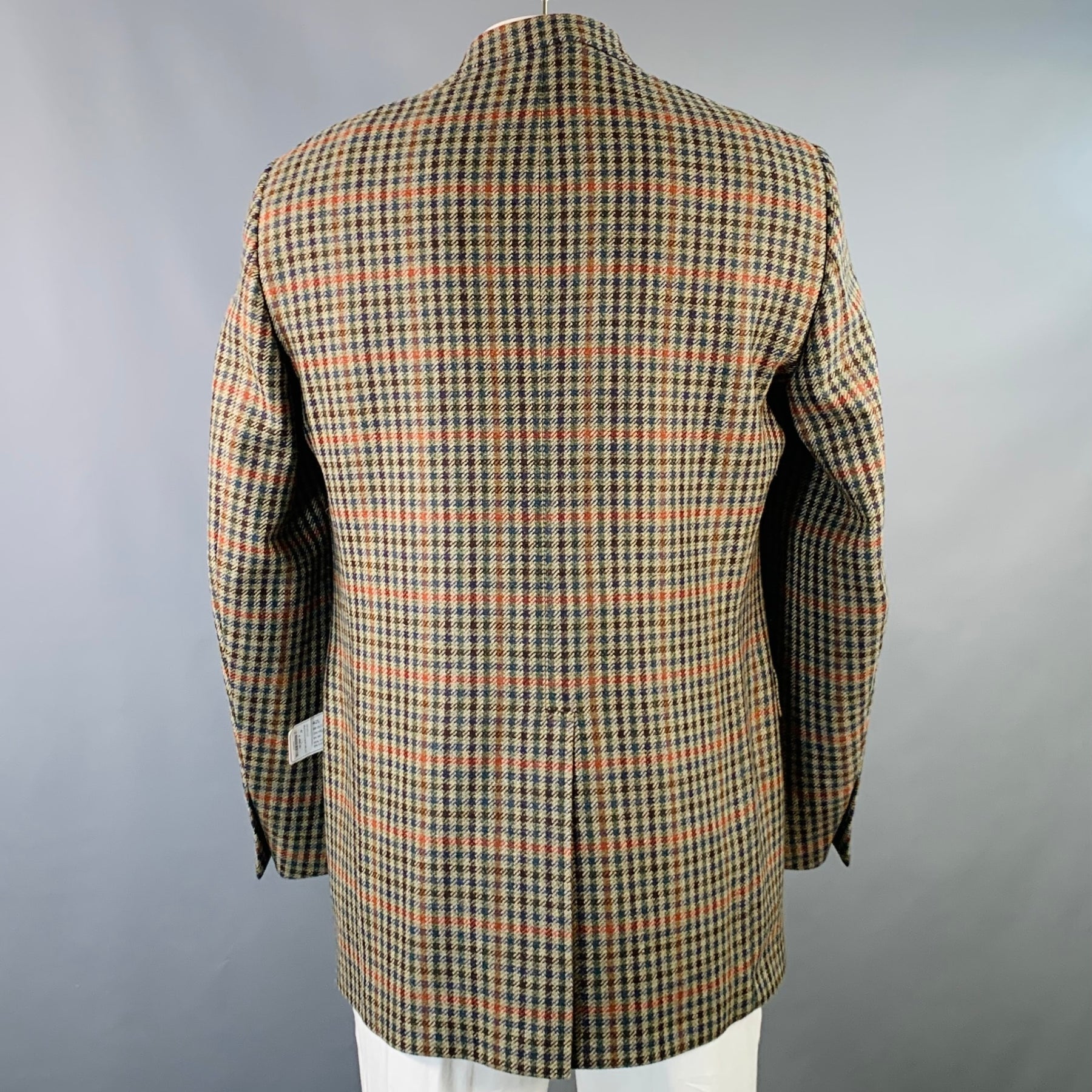 O'CONNELL'S Size 42 Long Tan Red Blue Plaid Wool Notch Lapel Sport Coat