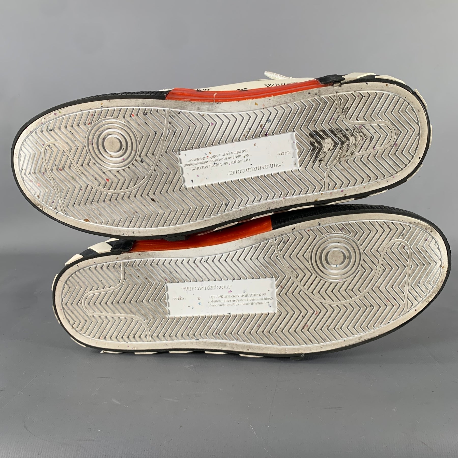 OFF-WHITE Size 12 Off White Black & Orange Leather High Top Sneakers