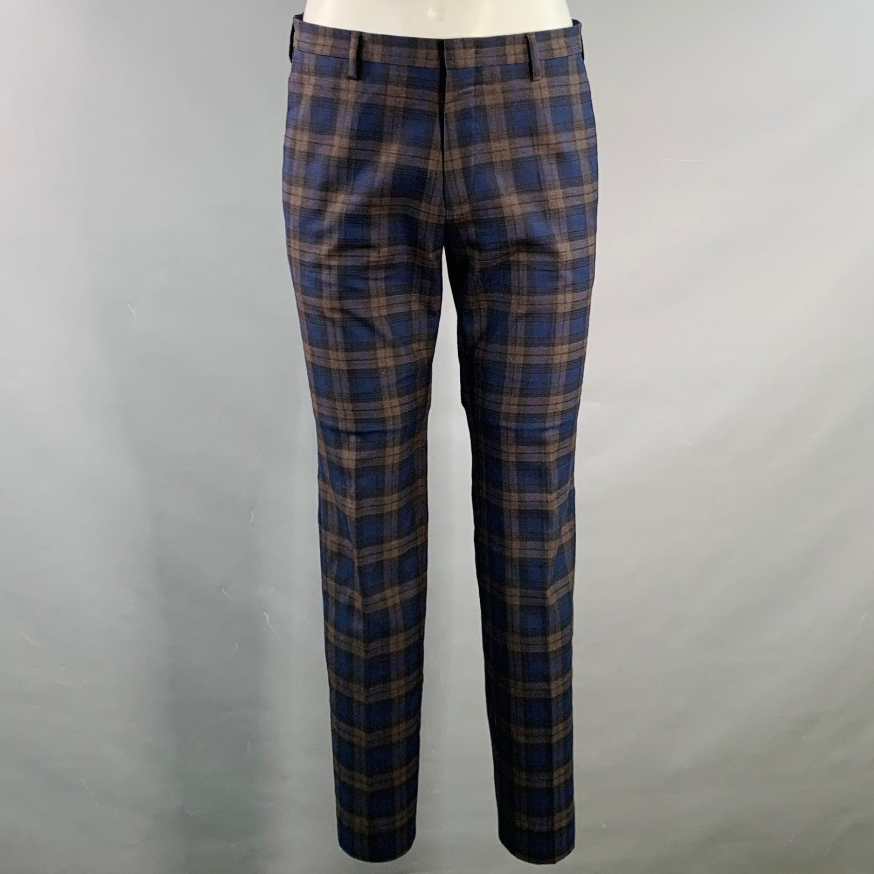 PAUL SMITH Size 38 Soho Navy Brown Plaid Wool Notch Lapel Suit