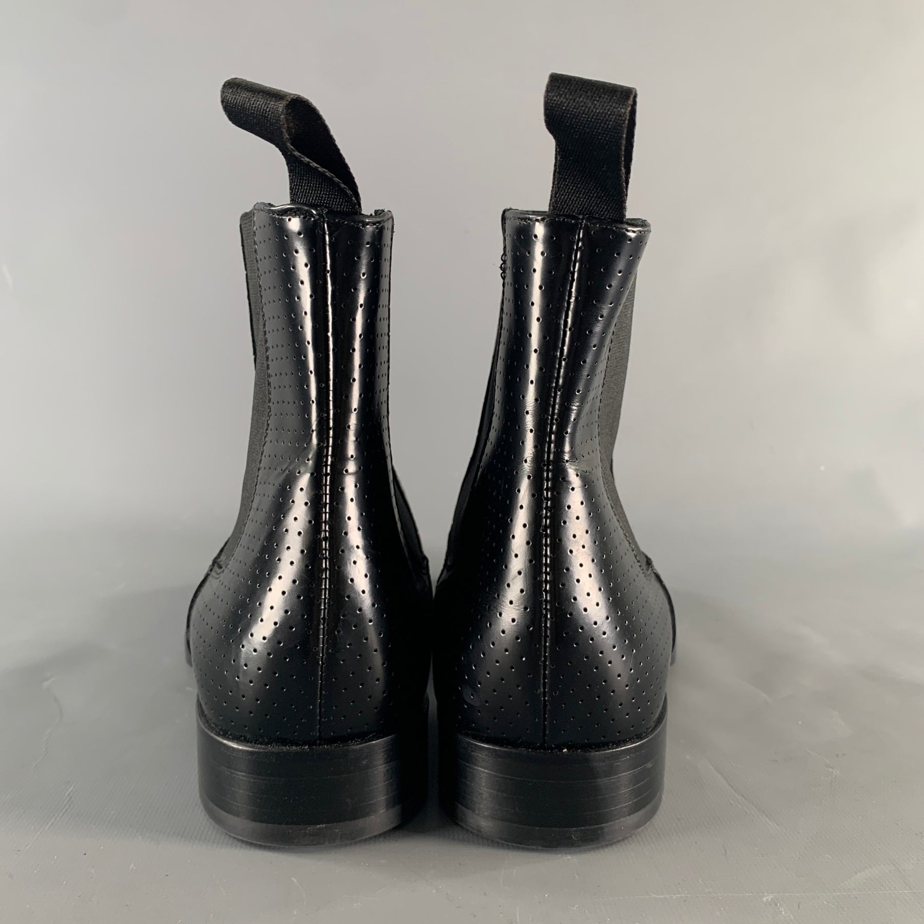 PAUL SMITH Size 9 Black Perforated Leather Ankle Boots