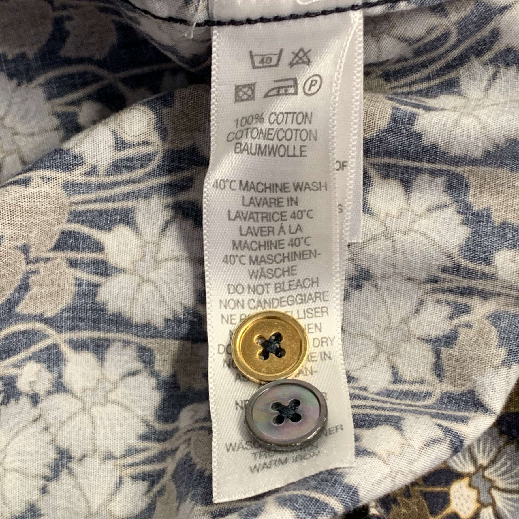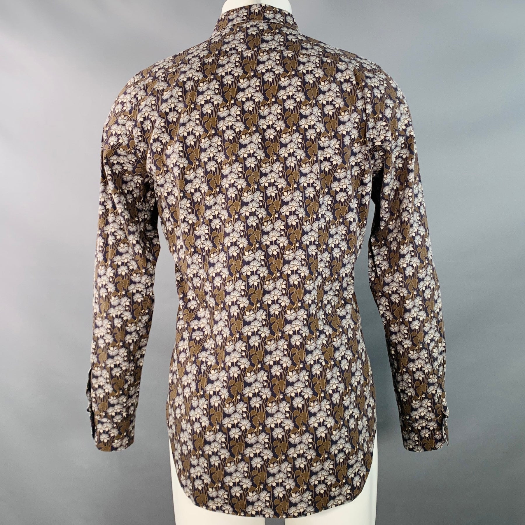 PAUL SMITH Size M Navy Brown Blue Floral Cotton Long Sleeve Shirt