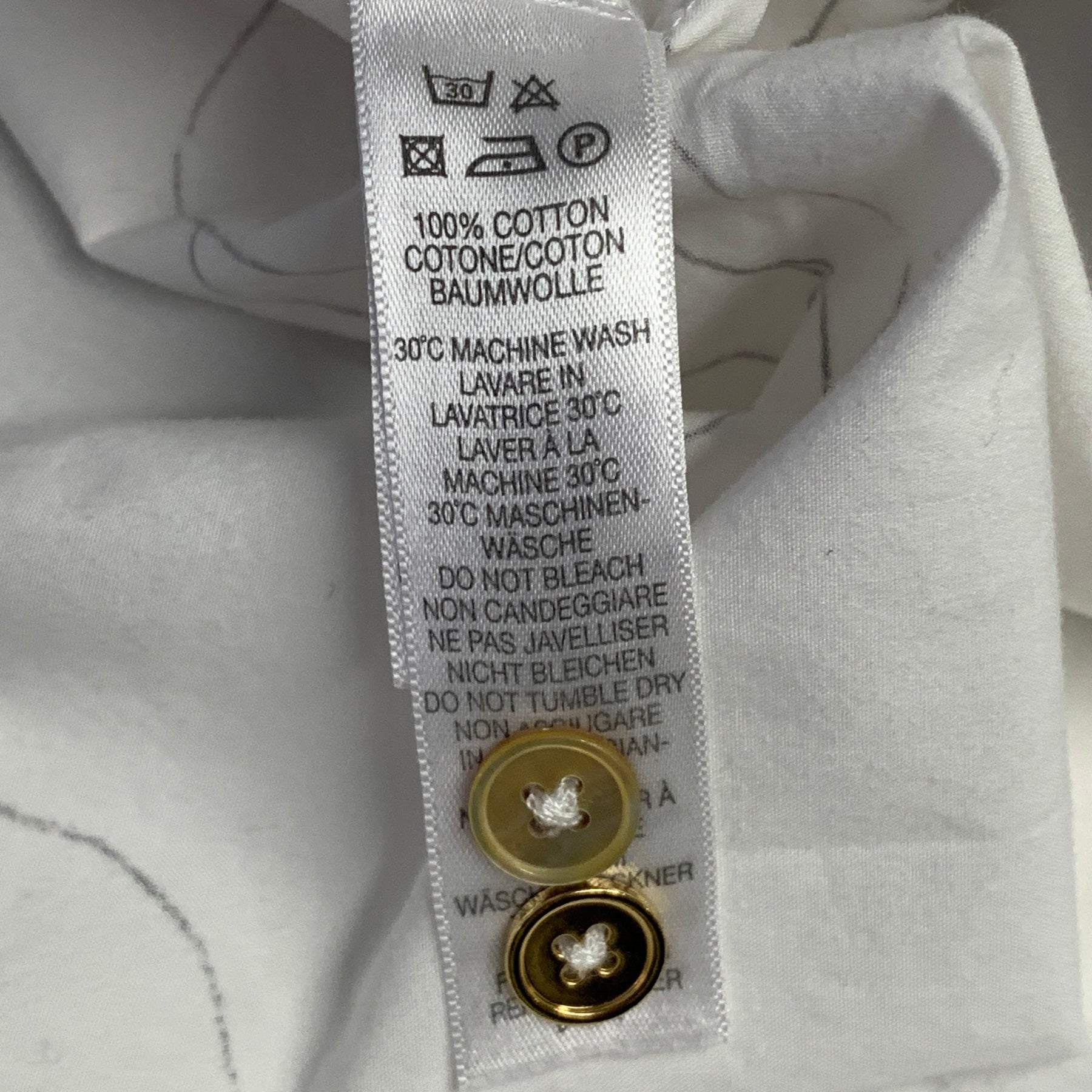 PAUL SMITH Size S White Grey Print Cotton Spread Collar Long Sleeve Shirt