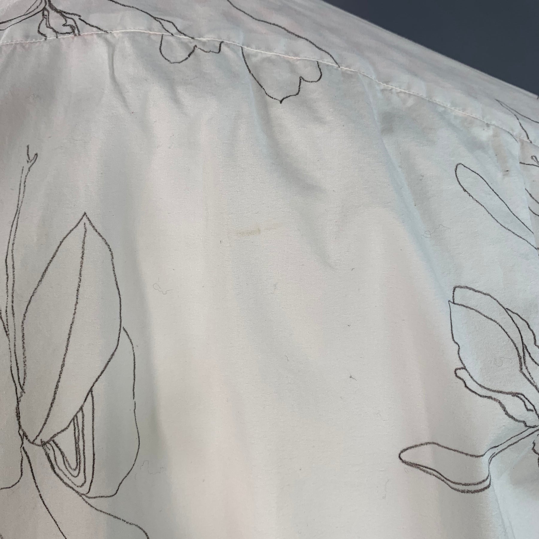 PAUL SMITH long sleeve shirt in a white cotton woven fabric featuring a grey floral pencil line drawing print, spread collar, and button closure. Made in Italy.