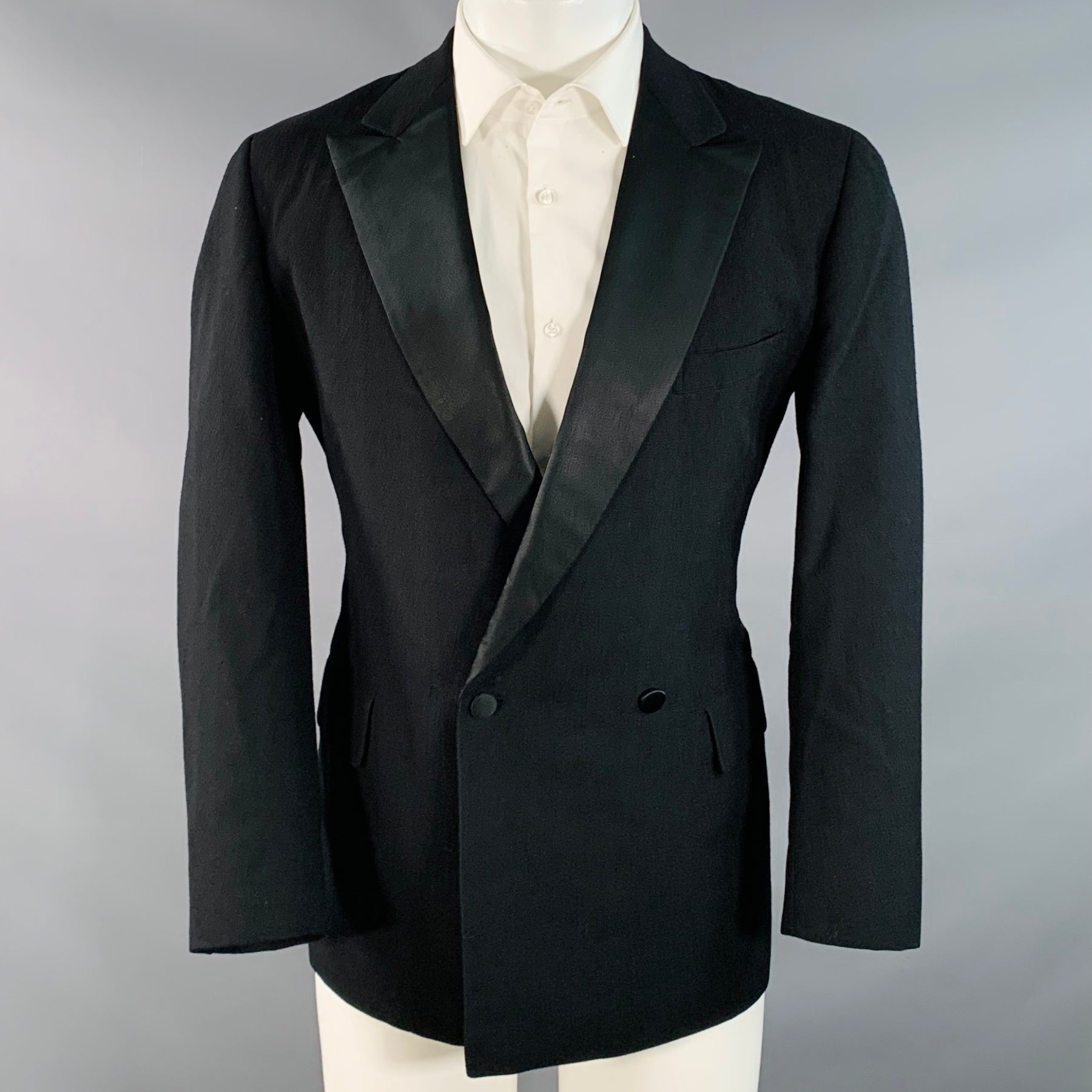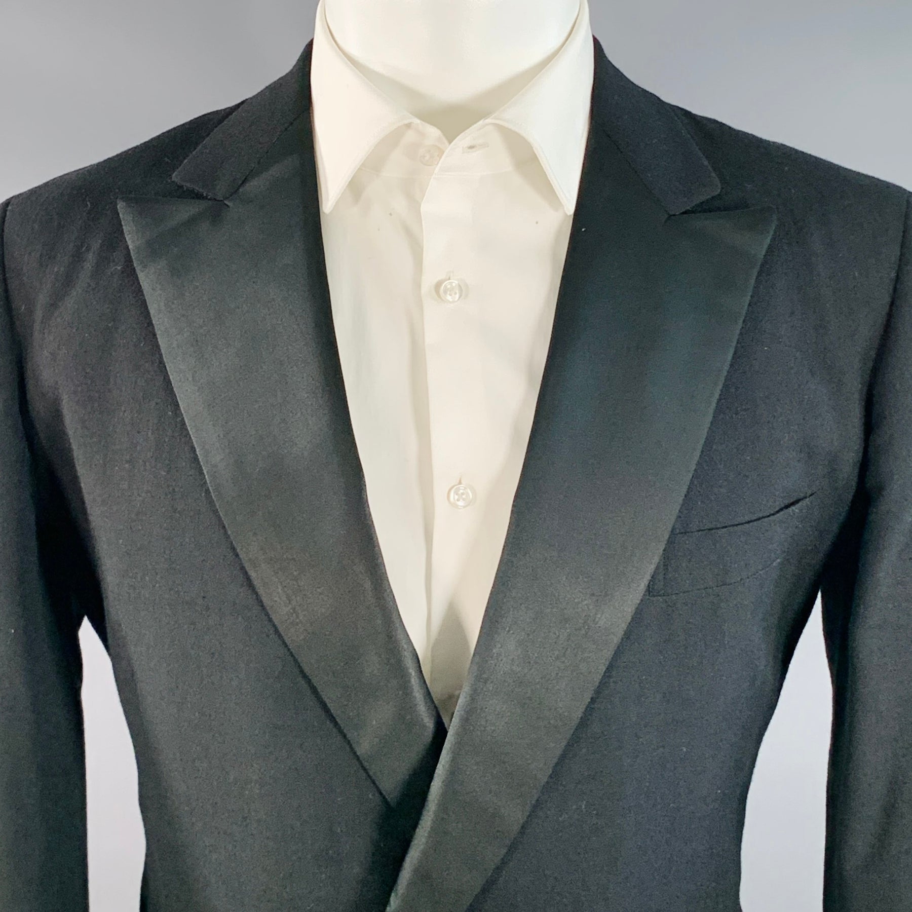 PAUL STUART Size 40 Regular Black Wool Double Breasted Peak Lapel Tuxedo Sport Coat