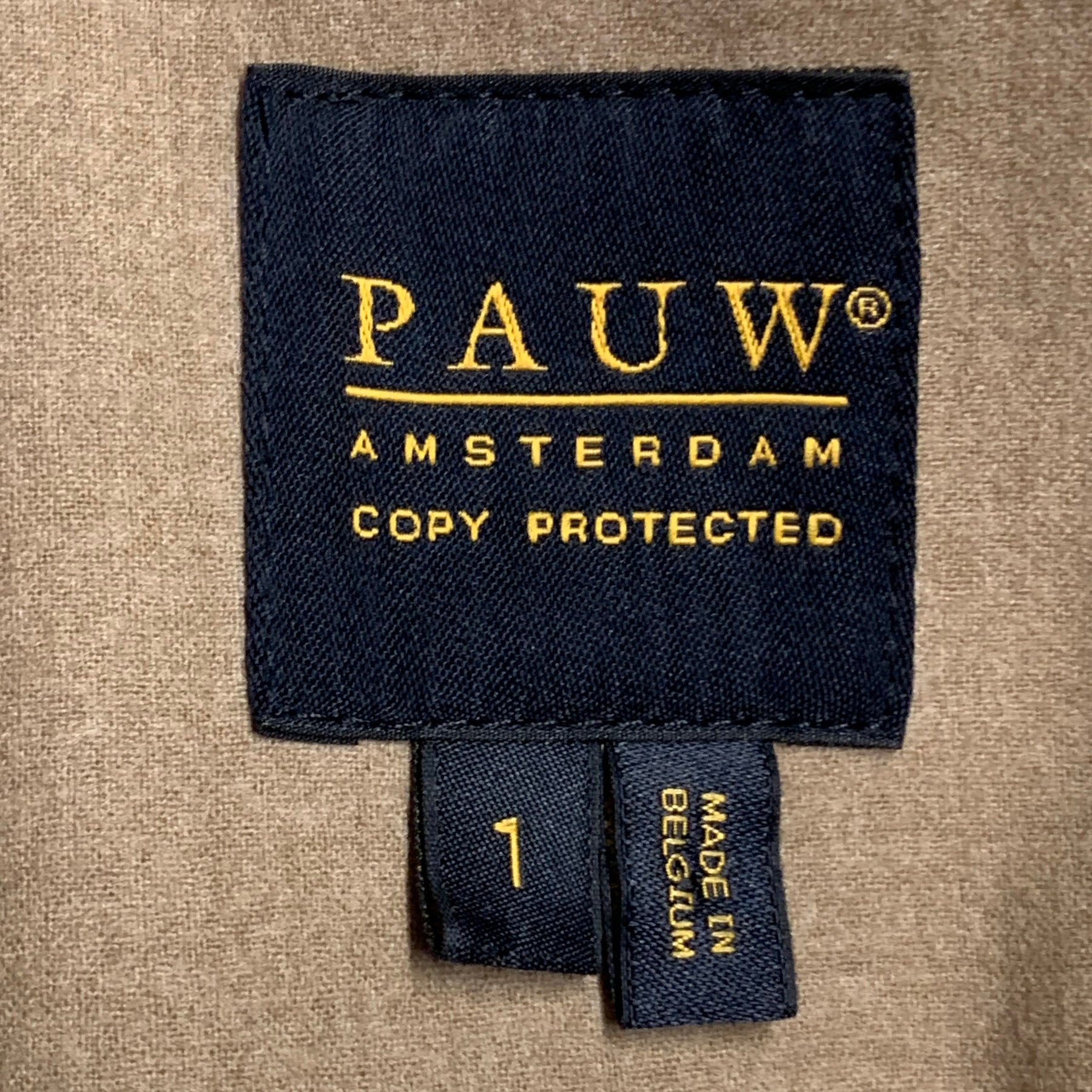 PAUW blazer in a beige wool stretch blend fabric featuring a shawl lapel, pleated back, and double ties closure. Made in Belgium.