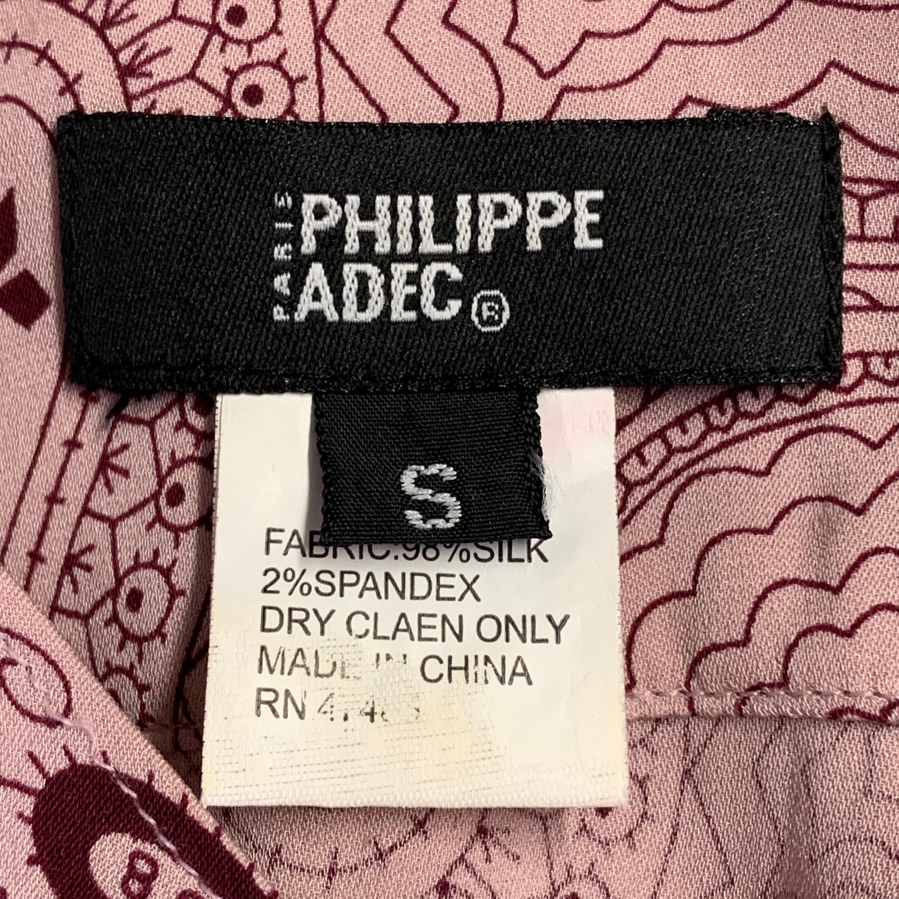 PHILIPPE ADEC Size S Pink Burgundy Silk Blend Paisley Sleeveless Layered High Neck Casual Top
