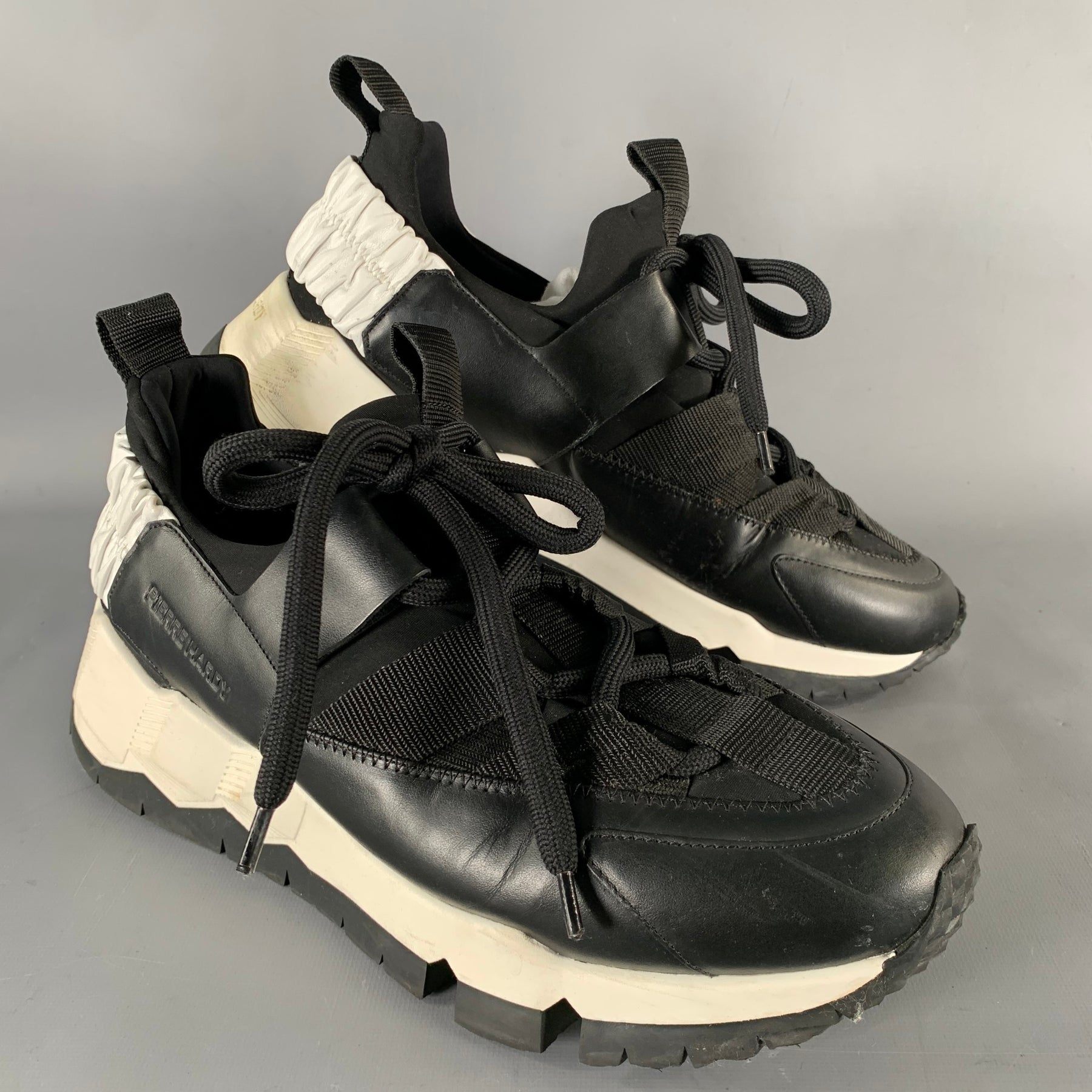 PIERRE HARDY Size 12 Black White Layered Leather Platform Sneakers