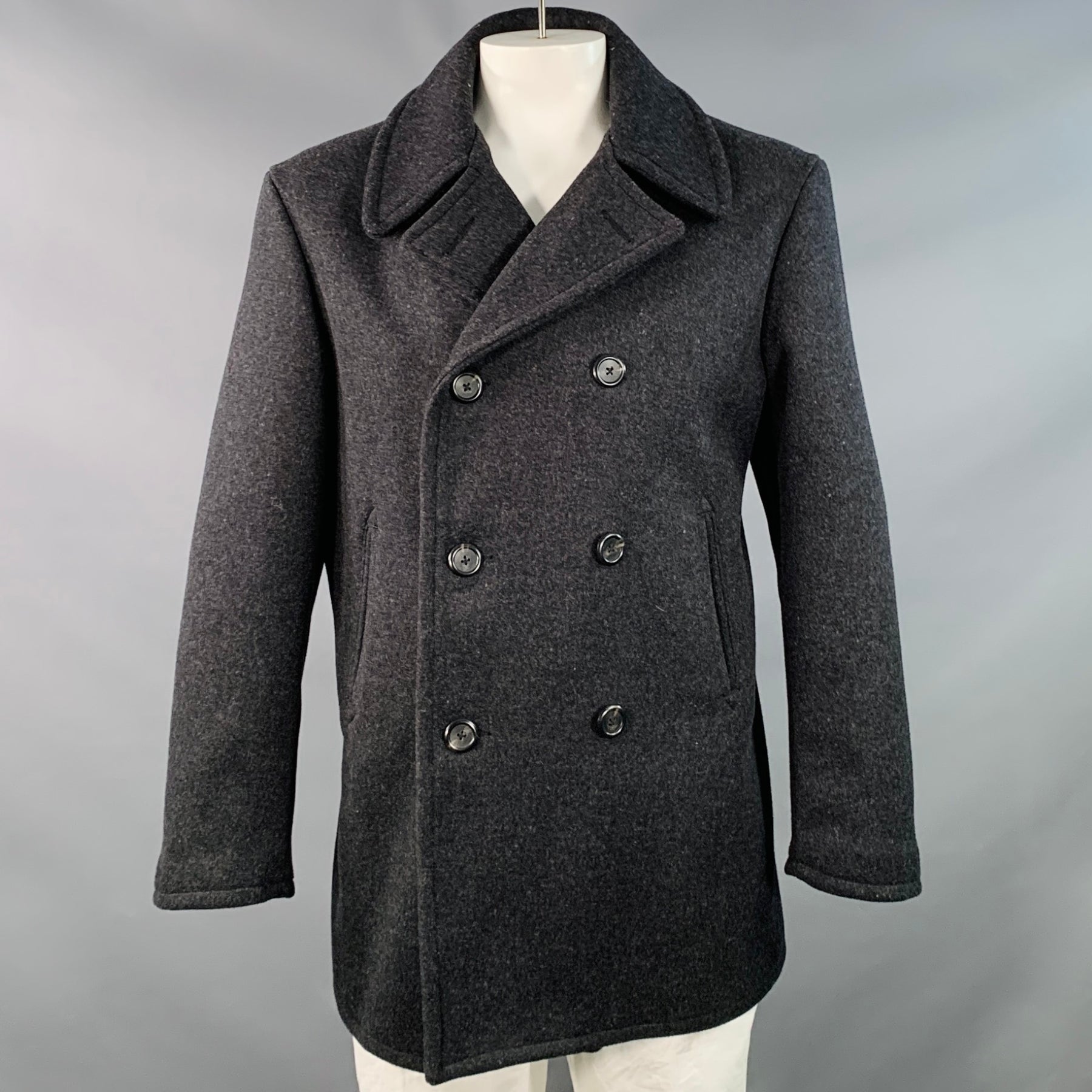POLO by RALPH LAUREN Melton Size L Charcoal Grey Wool Double Breasted Notch Lapel Peacoat